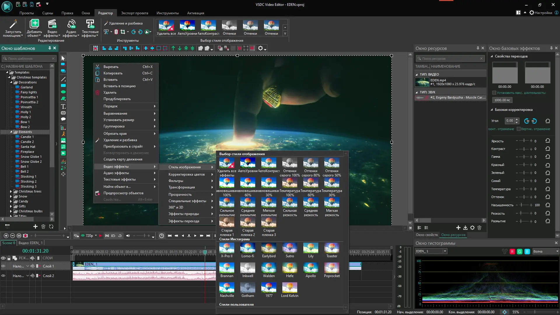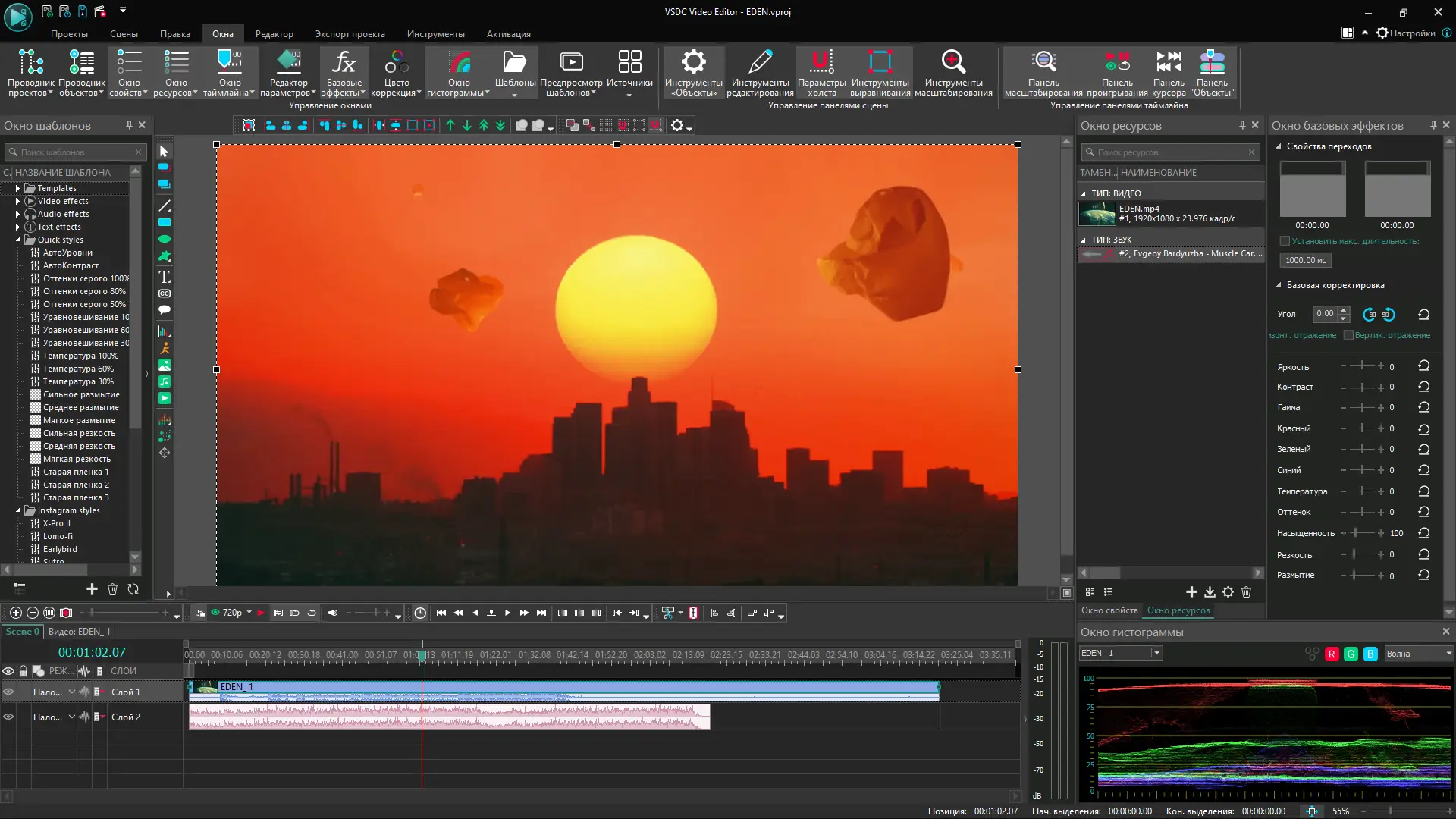 Работа с VSDC начинается с импорта медиафайлов на таймлайн, где они размещаются по слоям. Далее можно применять эффекты, настраивать переходы, добавлять текст с анимацией и использовать маски для создания сложных визуальных композиций. Моушн трекинг позволяет привязывать объекты к движущимся элементам видео, а инструмент редактирования бита помогает синхронизировать визуальные эффекты с ритмом музыки. Цветокоррекция, кривые HSL и режимы смешивания дают полный контроль над картинкой. Экспорт проекта поддерживает множество профилей, включая оптимизацию под YouTube, Instagram и другие платформы.