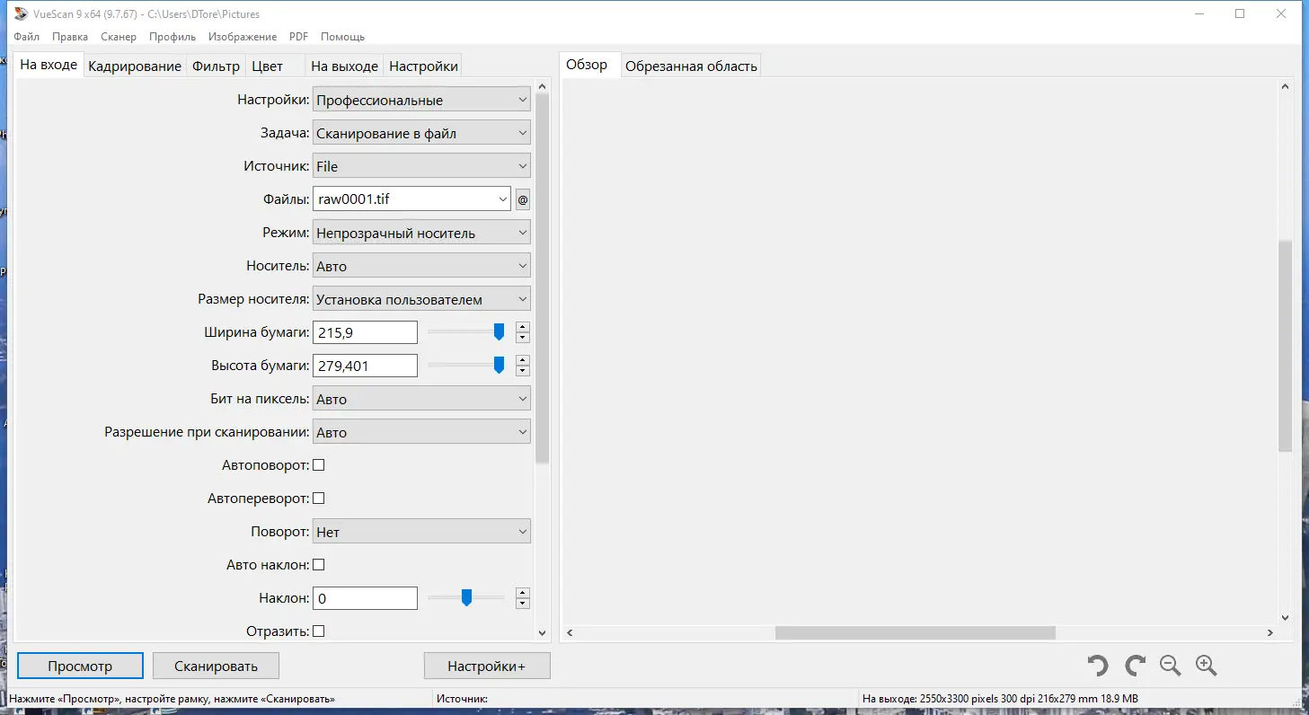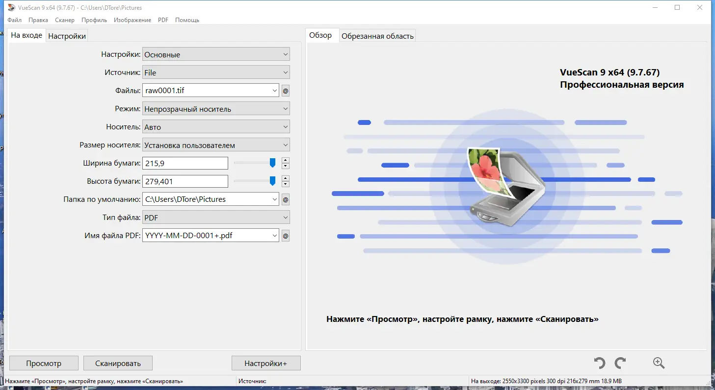 Работа с VueScan