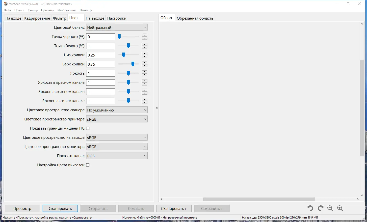 Использование VueScan начинается с выбора подключённого сканера и типа оригинала — отпечаток, негатив или слайд. Программа предлагает как автоматический режим, так и ручную настройку всех ключевых параметров: экспозиции, баланса белого, динамического диапазона и градационной характеристики по каждому цветовому каналу. Для повышения качества изображения доступно многопроходное сканирование с усреднением результатов, что эффективно снижает уровень шума. Функция инфракрасной очистки позволяет удалять мелкие загрязнения и царапины на плёнках без потери деталей. Пользователь может сохранять настройки в профили, что ускоряет процесс при серийной обработке. Поддержка OCR-модулей позволяет распознавать текст прямо в процессе сканирования, а мультиязычный интерфейс включает русский и украинский языки. Версия x64 обеспечивает стабильную работу с объёмными файлами и высокими разрешениями.