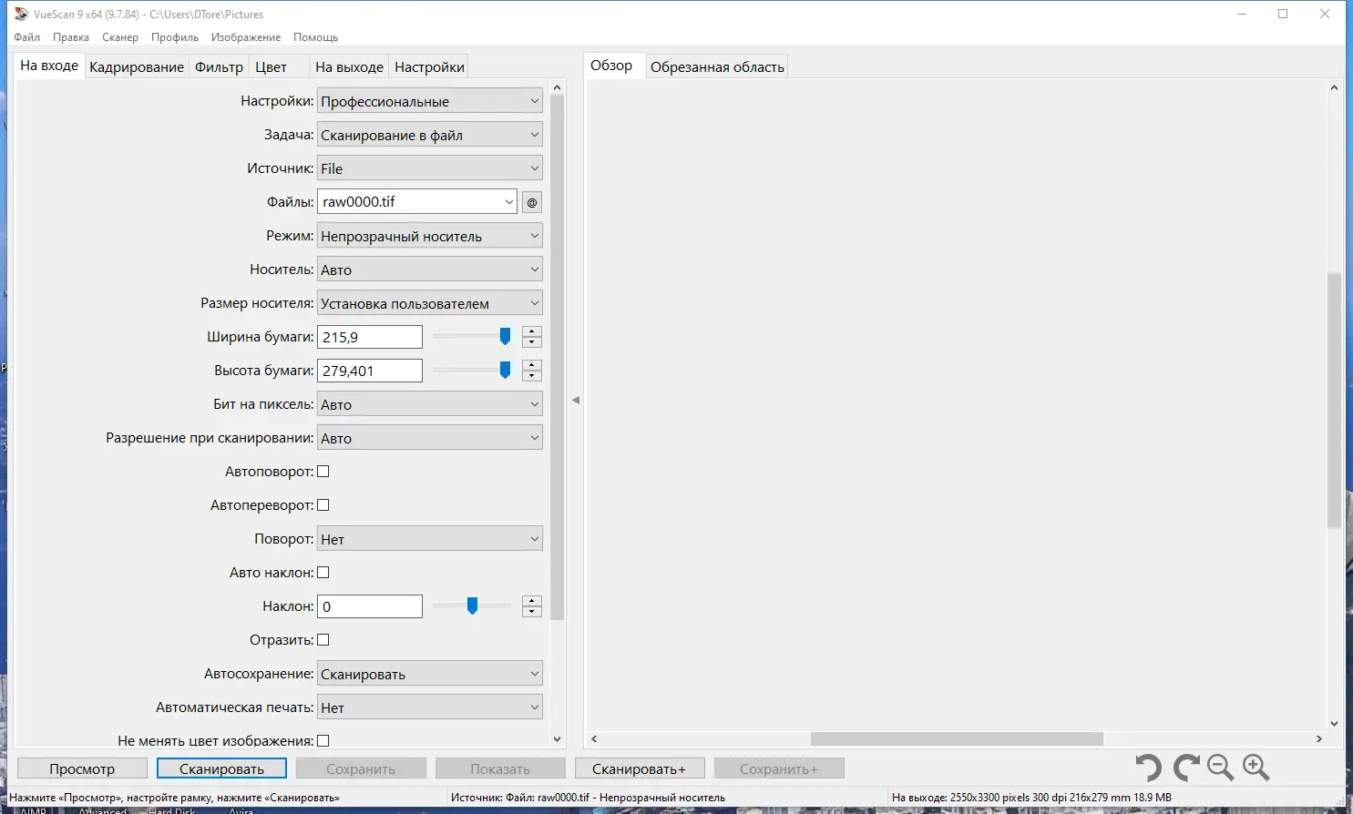 - Позволяет создавать RAW-файлы для последующей обработки без повторного сканирования.