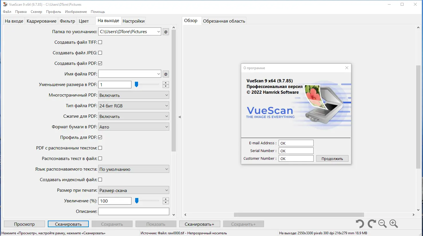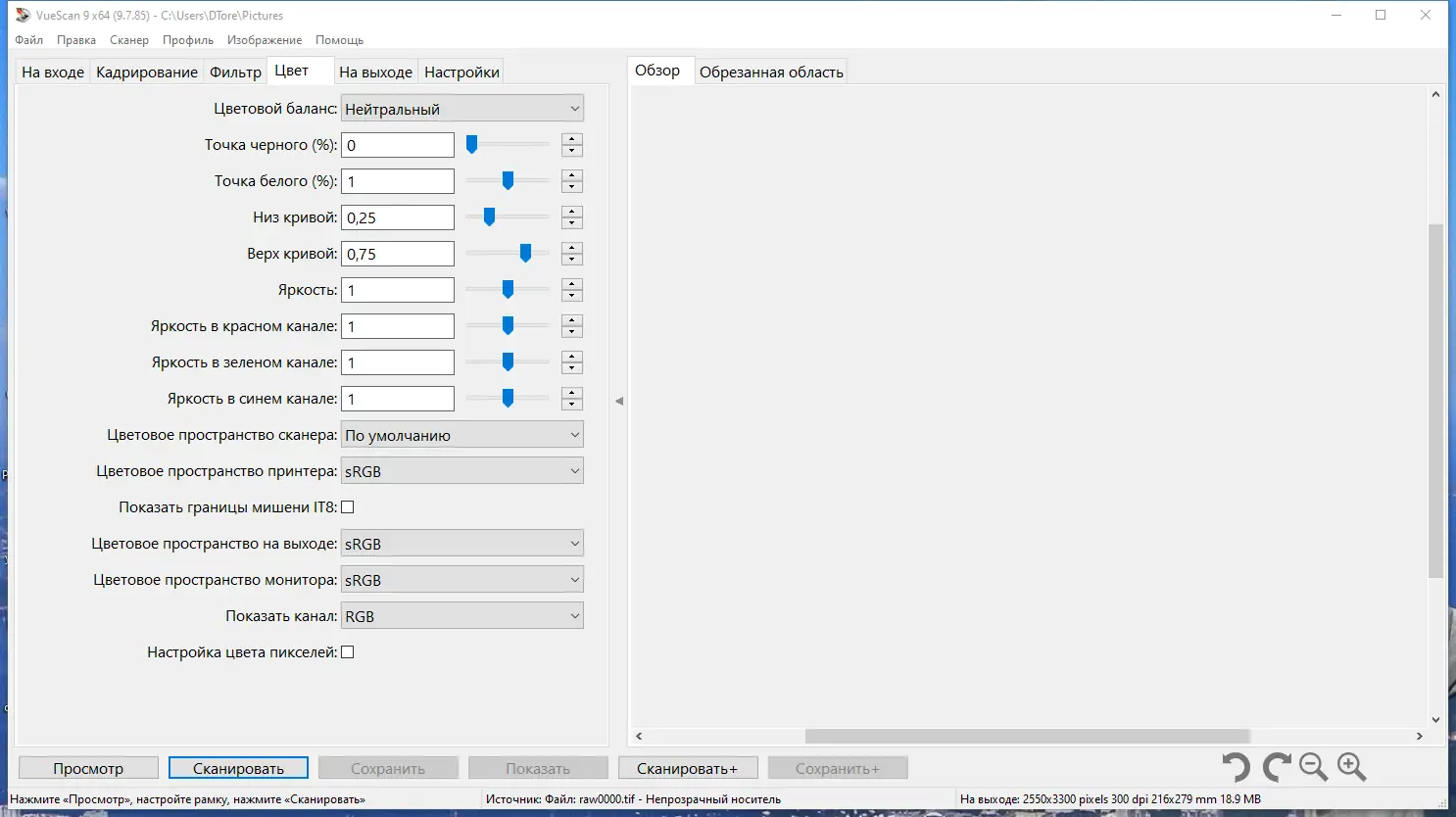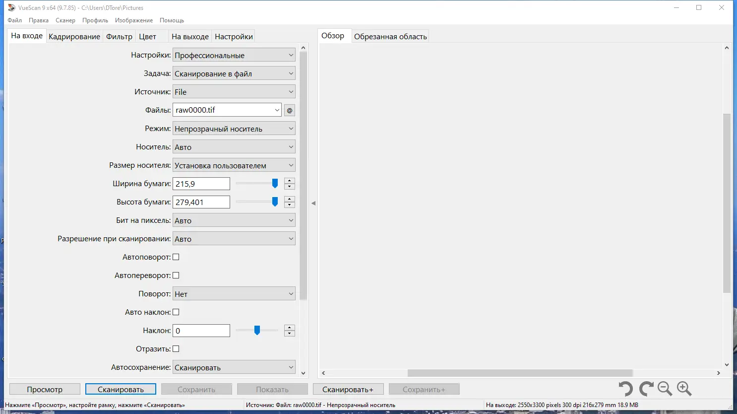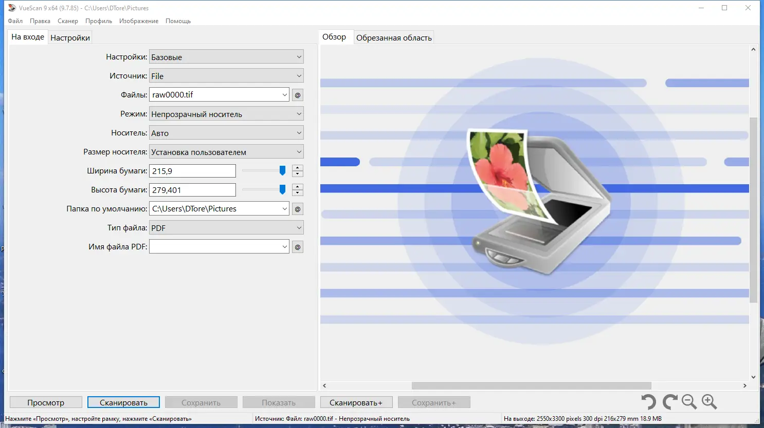 Работа с VueScan