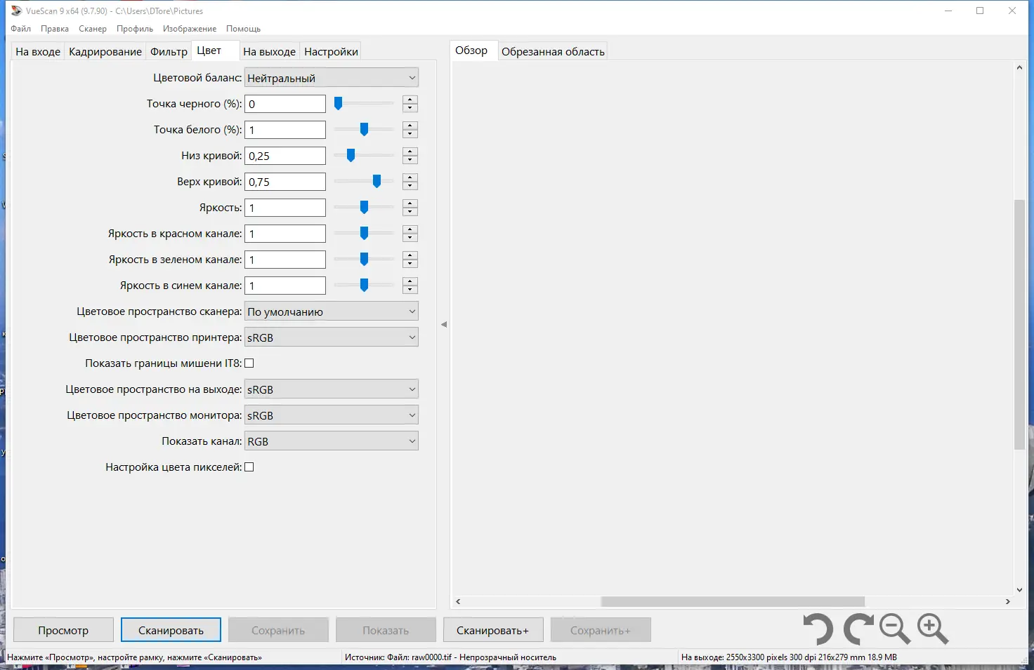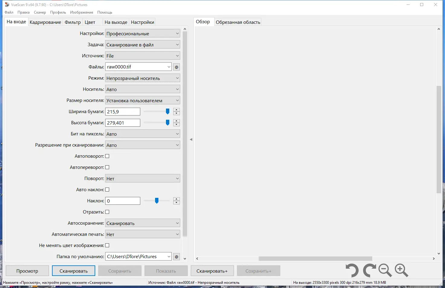 Работа с VueScan