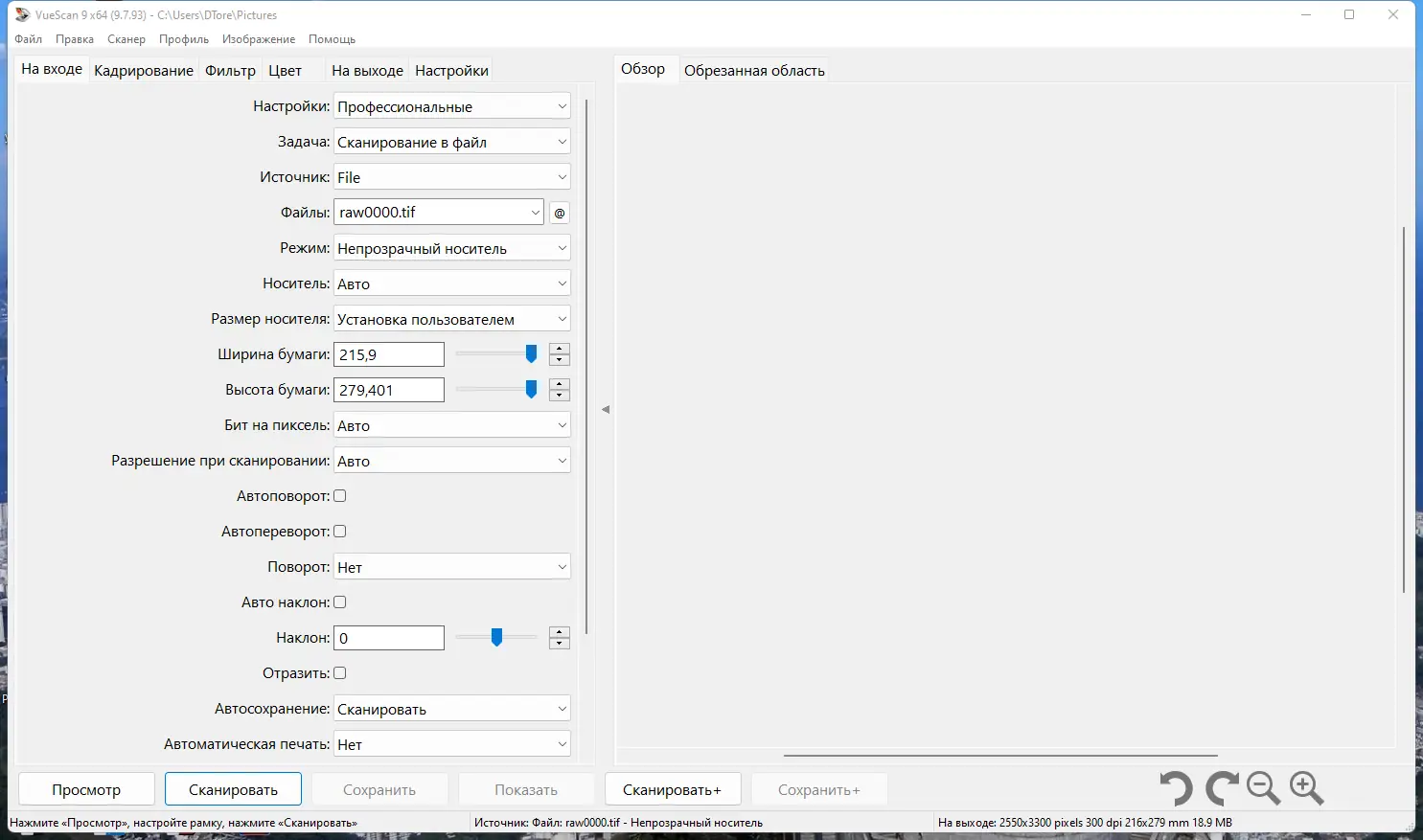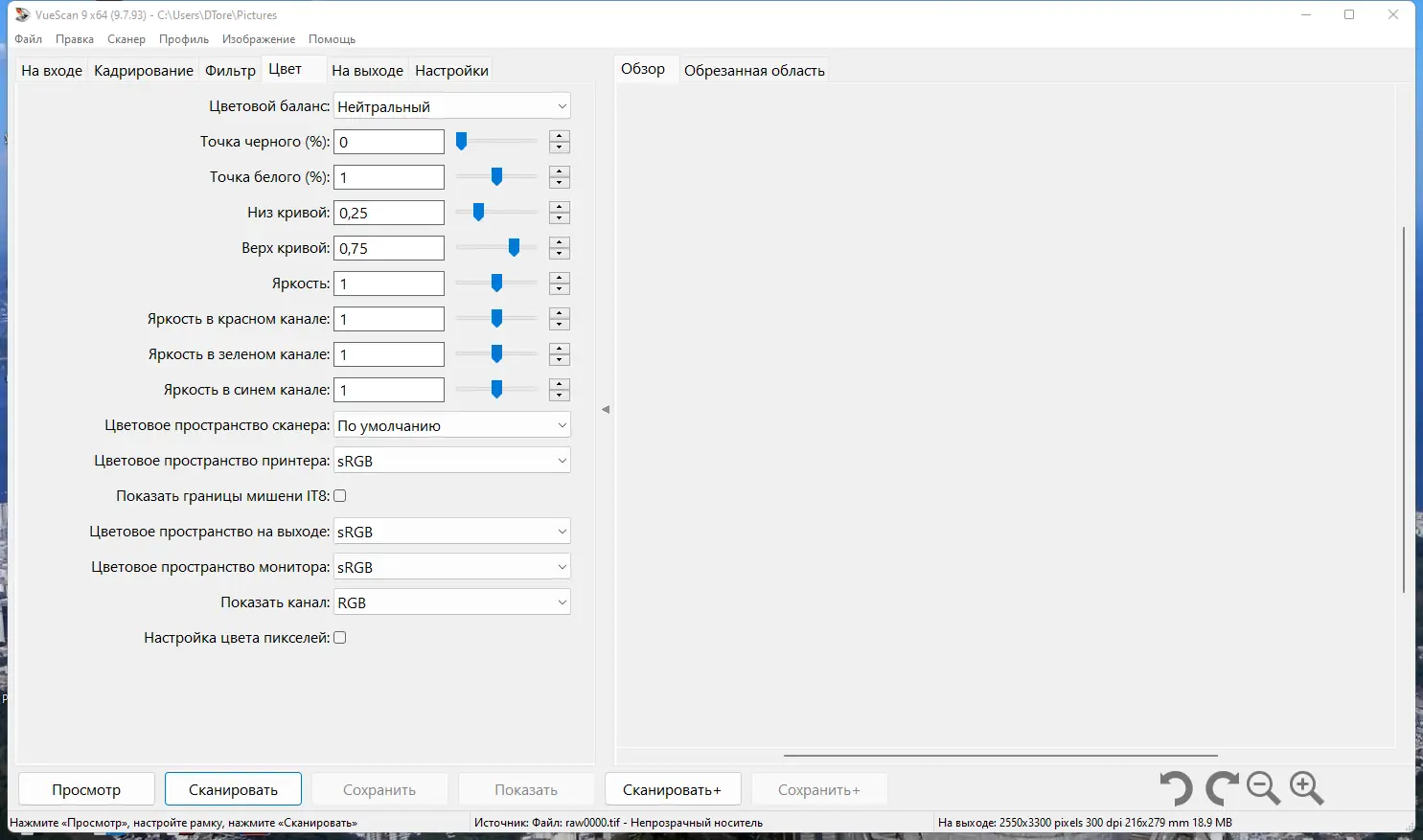 Работа с VueScan