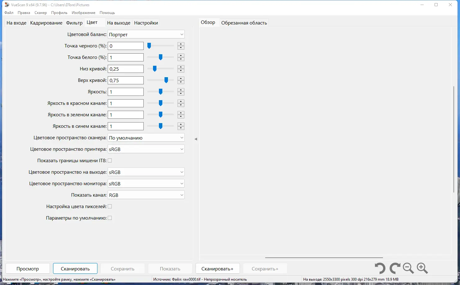 - Возможность работы с максимальной аппаратной глубиной цвета и разрешением, что особенно ценно при оцифровке слайдов и негативов.