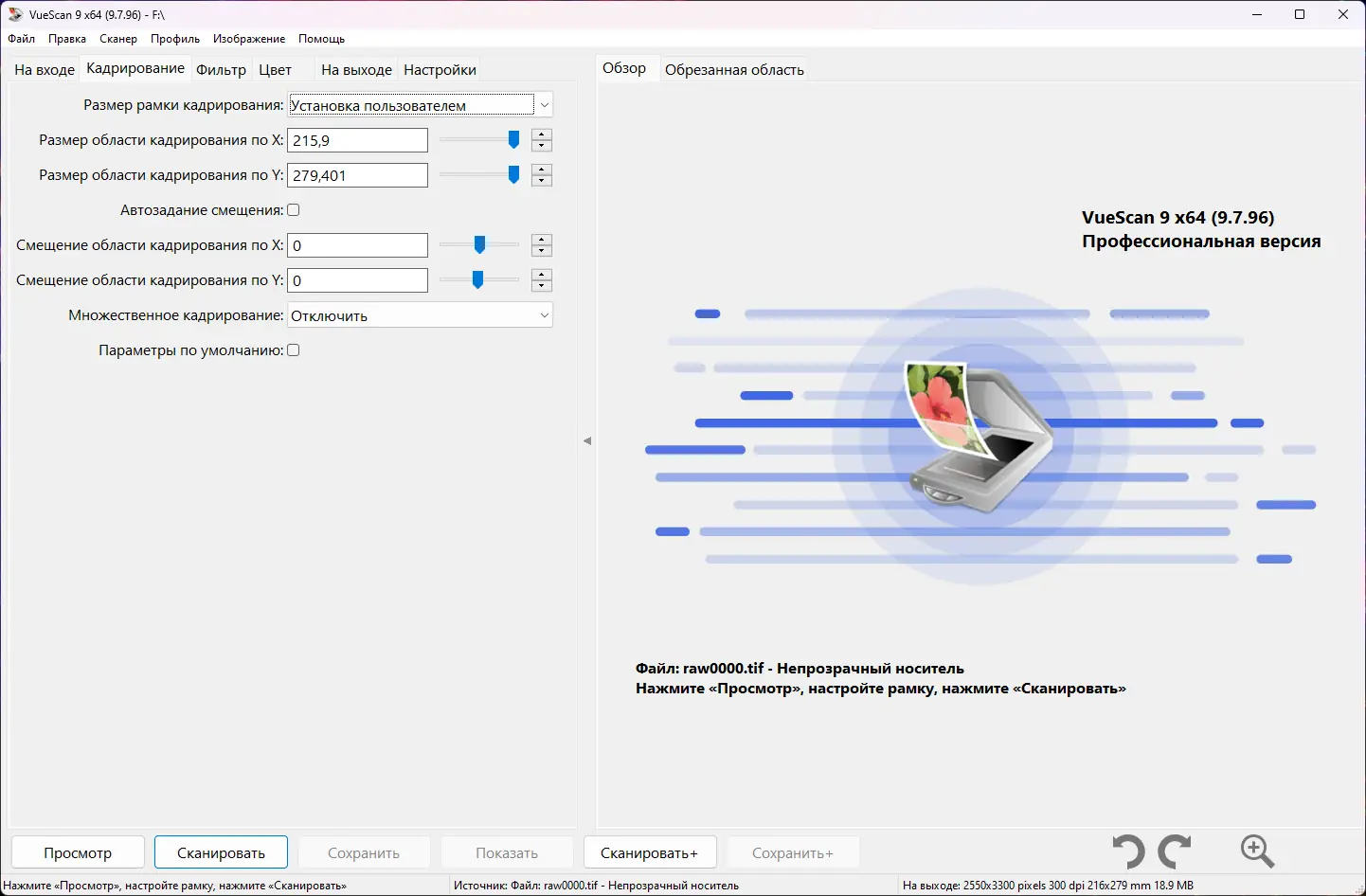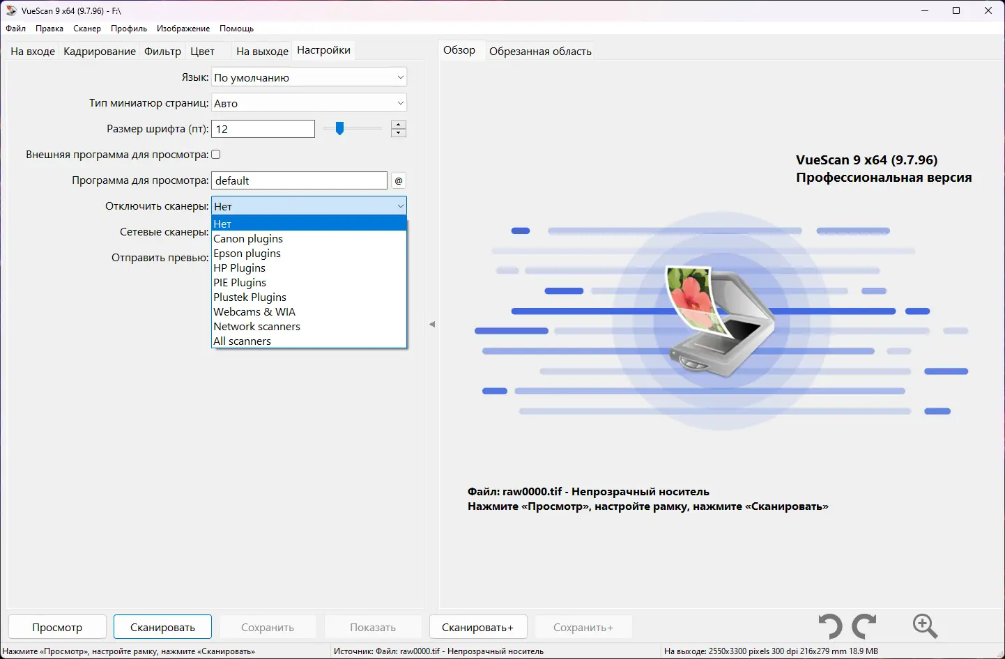 - Возможность создания RAW-файлов для дальнейшей обработки без повторного сканирования