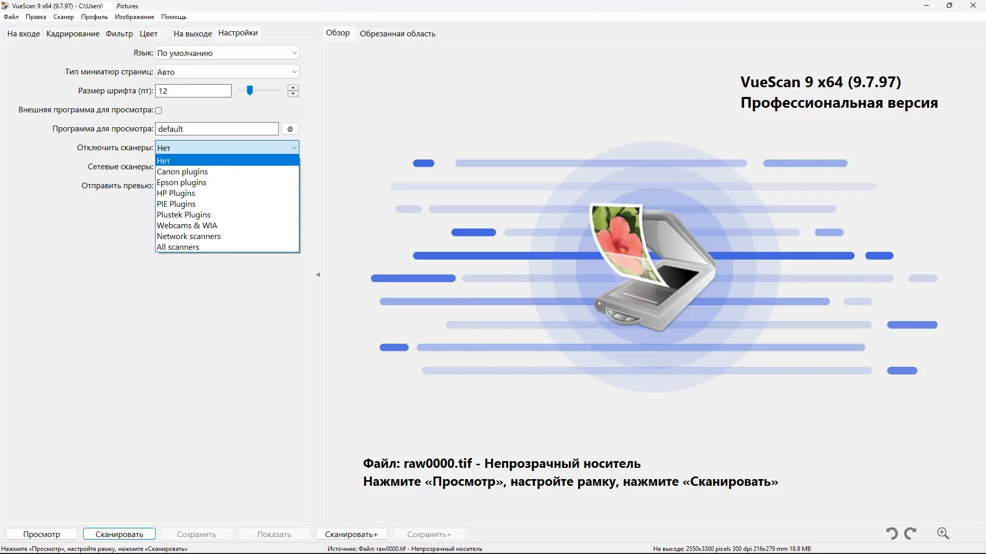 Как пользоваться VueScan