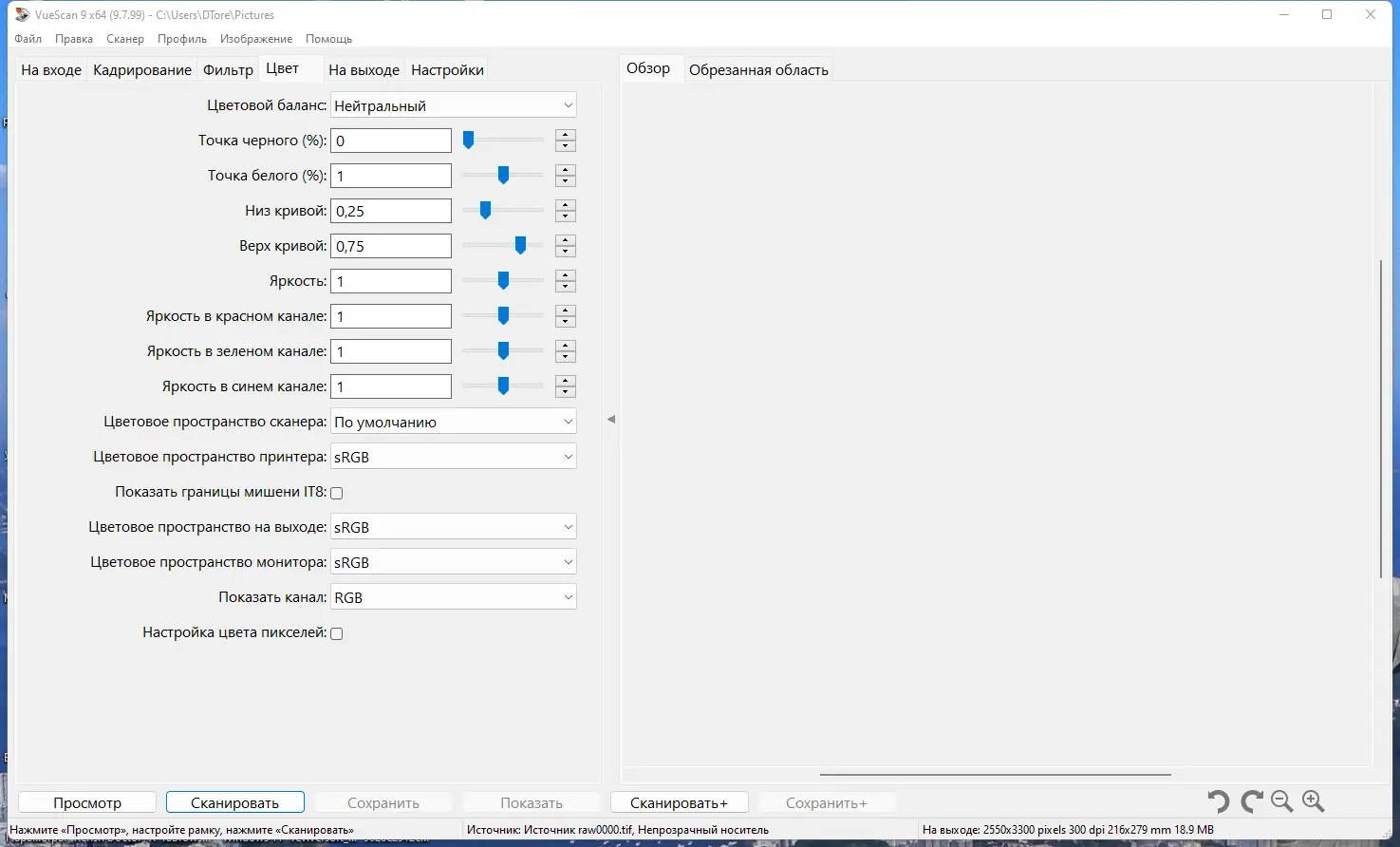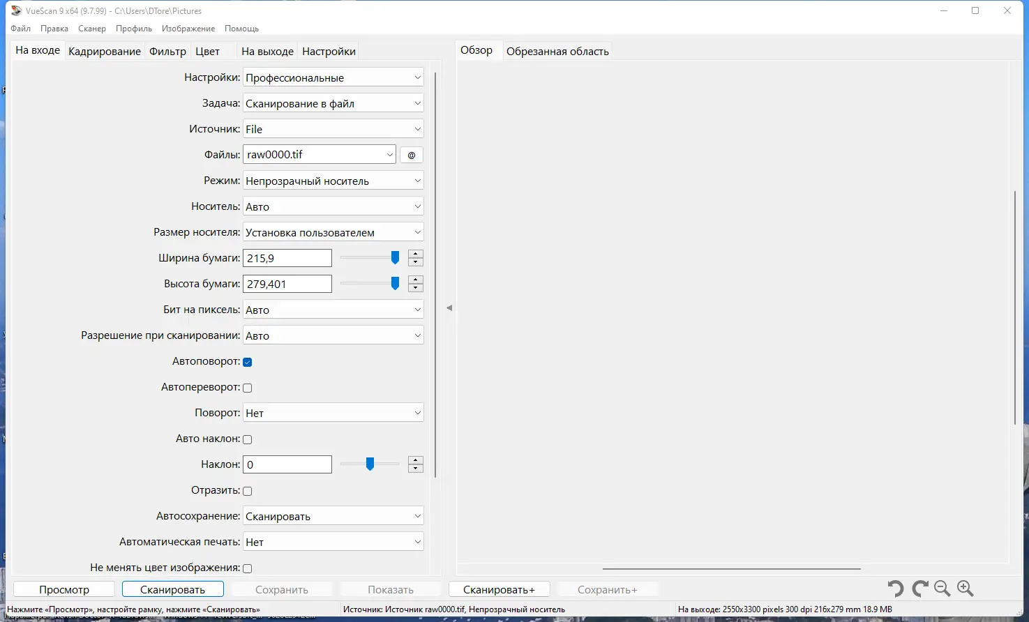 Работа с VueScan