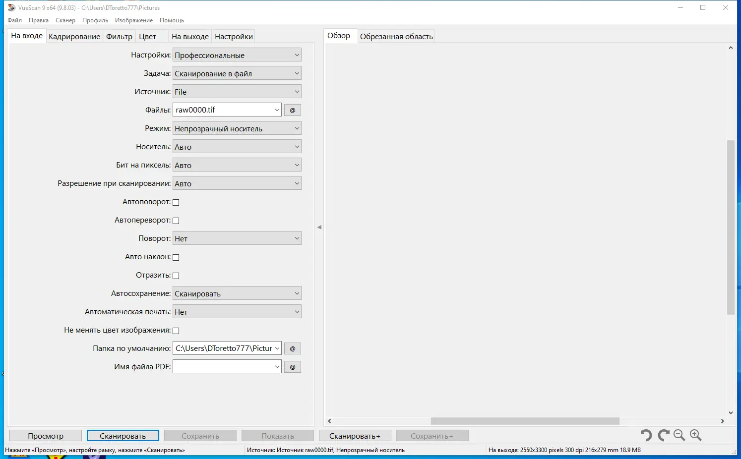Работа с VueScan
