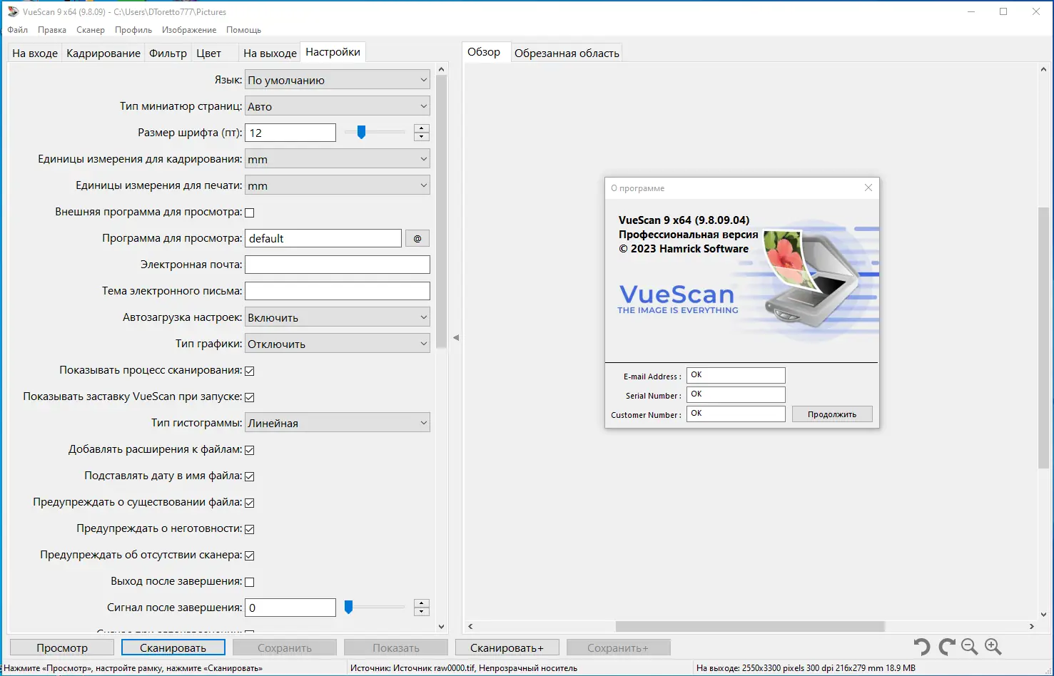 VueScan — универсальное программное обеспечение для управления сканерами от ведущих производителей, включая HP, Epson, Canon, Nikon и другие. Программа поддерживает более шести тысяч моделей устройств, обеспечивая расширенные настройки цветопередачи, пакетное сканирование и работу с RAW-файлами. Она позволяет максимально использовать аппаратные возможности сканера, включая инфракрасное удаление дефектов и многопроходное сканирование для повышения качества изображений.
