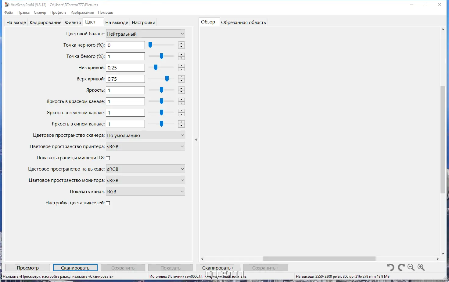 Работа с VueScan