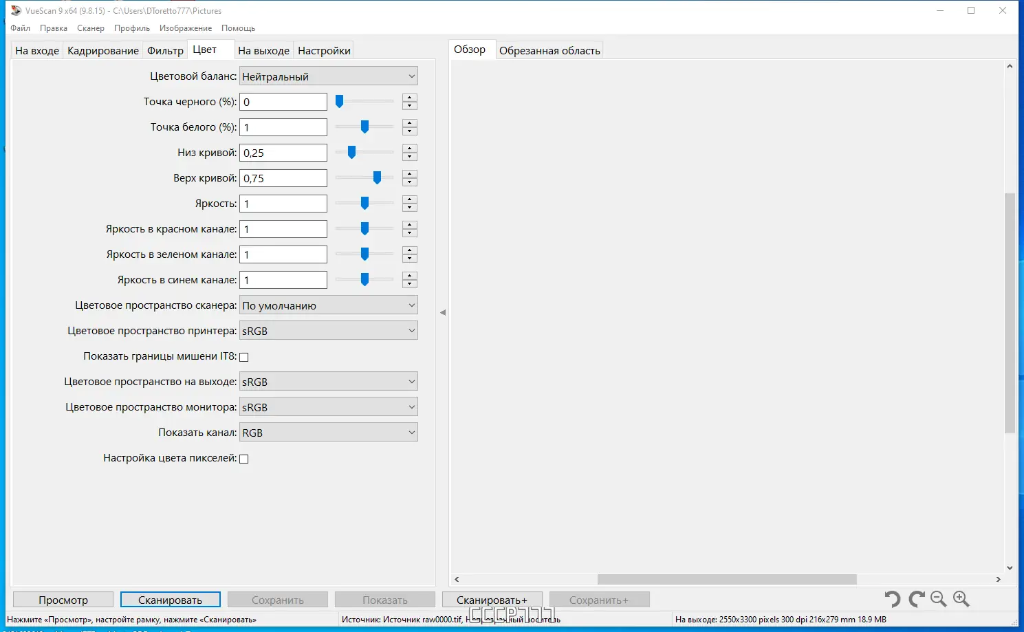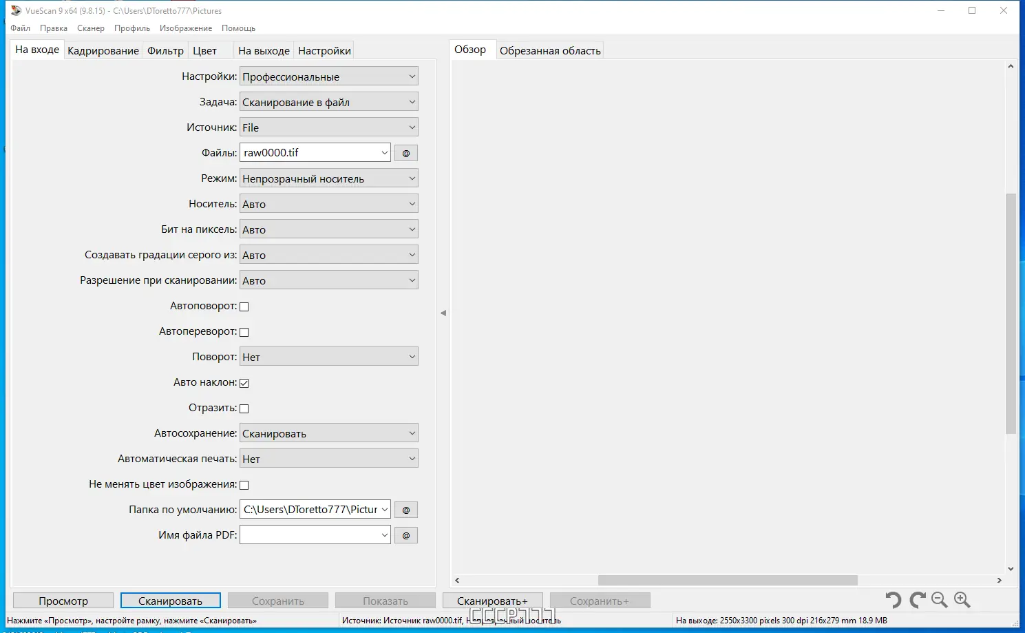 Работа с VueScan