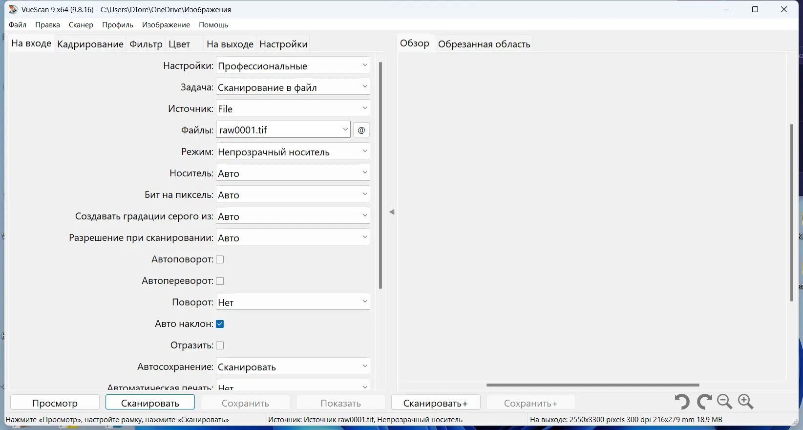 Работа с VueScan