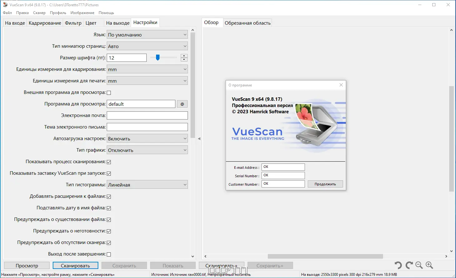 VueScan — универсальное программное обеспечение для высококачественного сканирования с поддержкой более 6000 моделей устройств, включая сканеры от HP, Epson, Canon, Nikon и других производителей. Программа обеспечивает расширенный контроль над параметрами сканирования, включая работу с глубиной цвета, инфракрасной очисткой и многопроходным режимом. Подходит как для любителей, так и для профессионалов, работающих с негативами, слайдами и отпечатками.