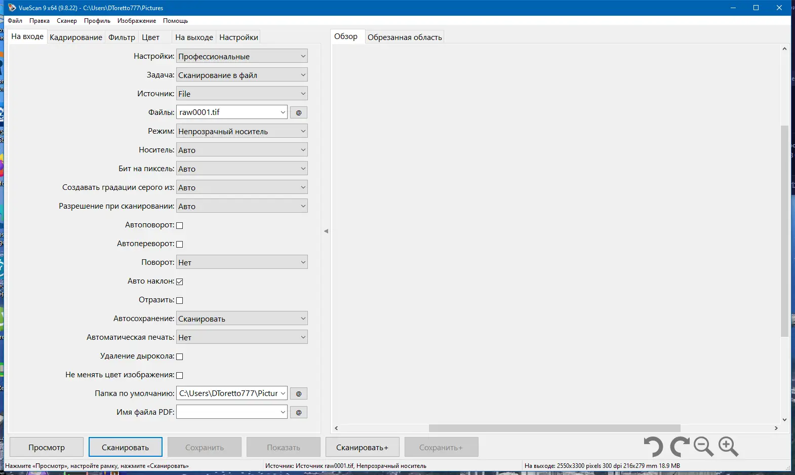 - Создание и обработка RAW-файлов независимо от подключённого сканера
