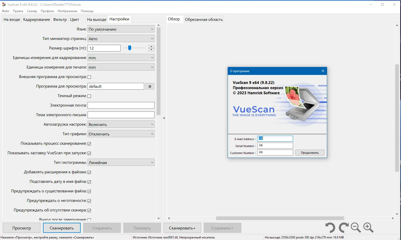 VueScan — универсальный программный инструмент для управления сканерами, предлагающий расширенные настройки сканирования и высокое качество обработки изображений. Программа совместима с тысячами моделей устройств и поддерживает работу с негативами, слайдами и аналоговыми оригиналами. Она позволяет создавать RAW-файлы, использовать цветокоррекцию, ICC-профили и многопроходное сканирование для достижения максимальной детализации.