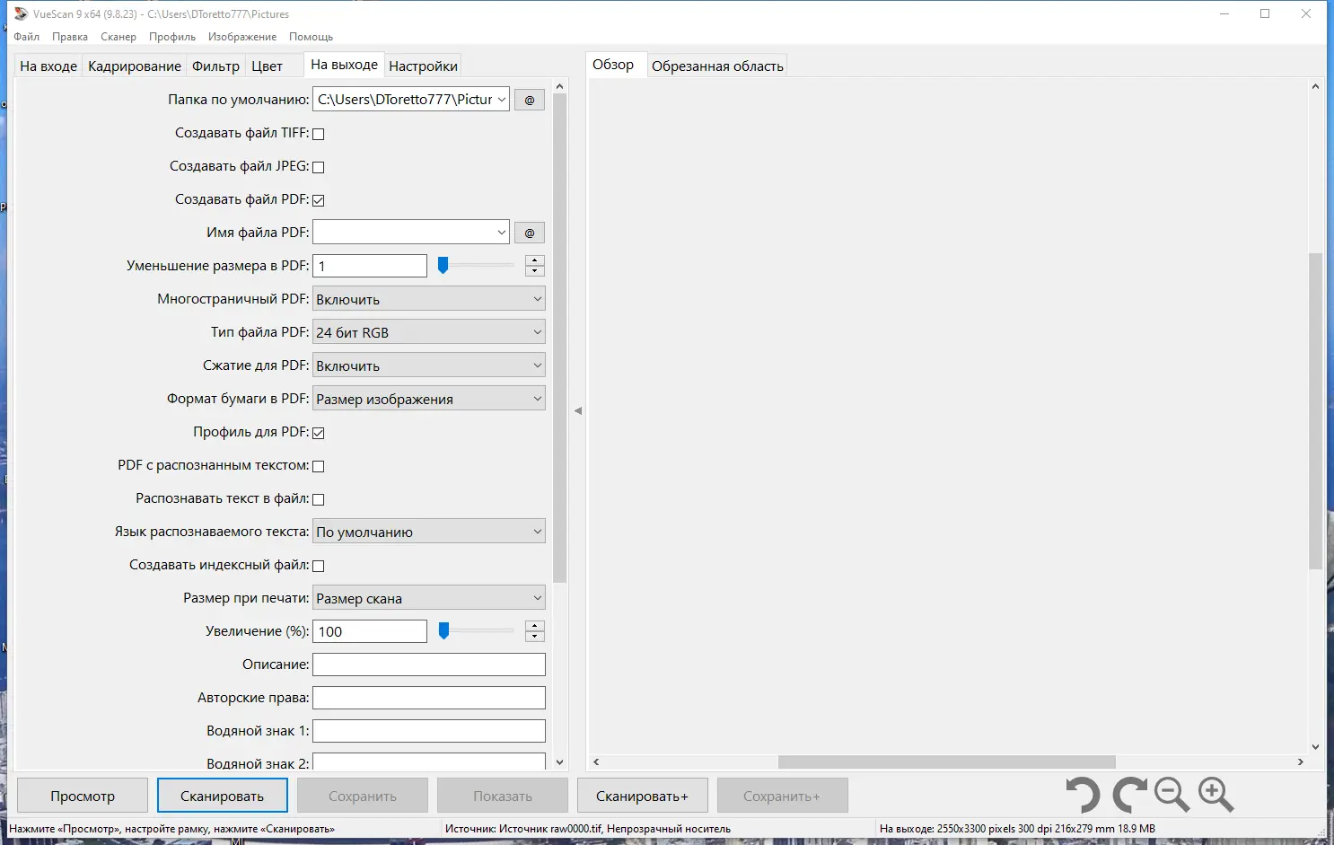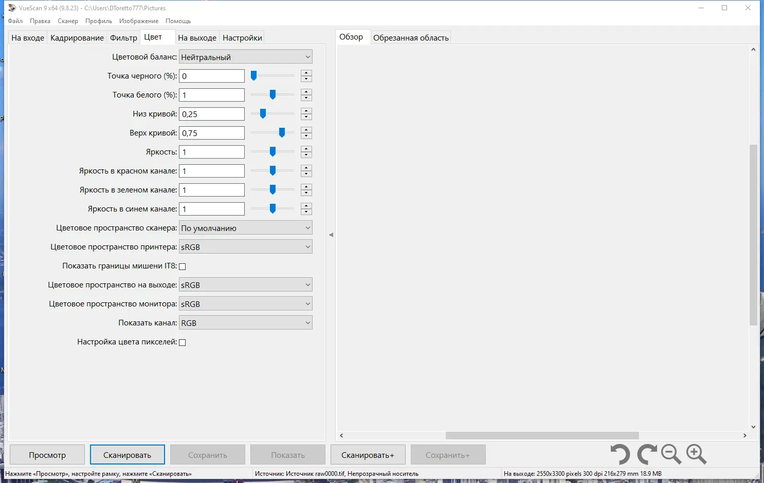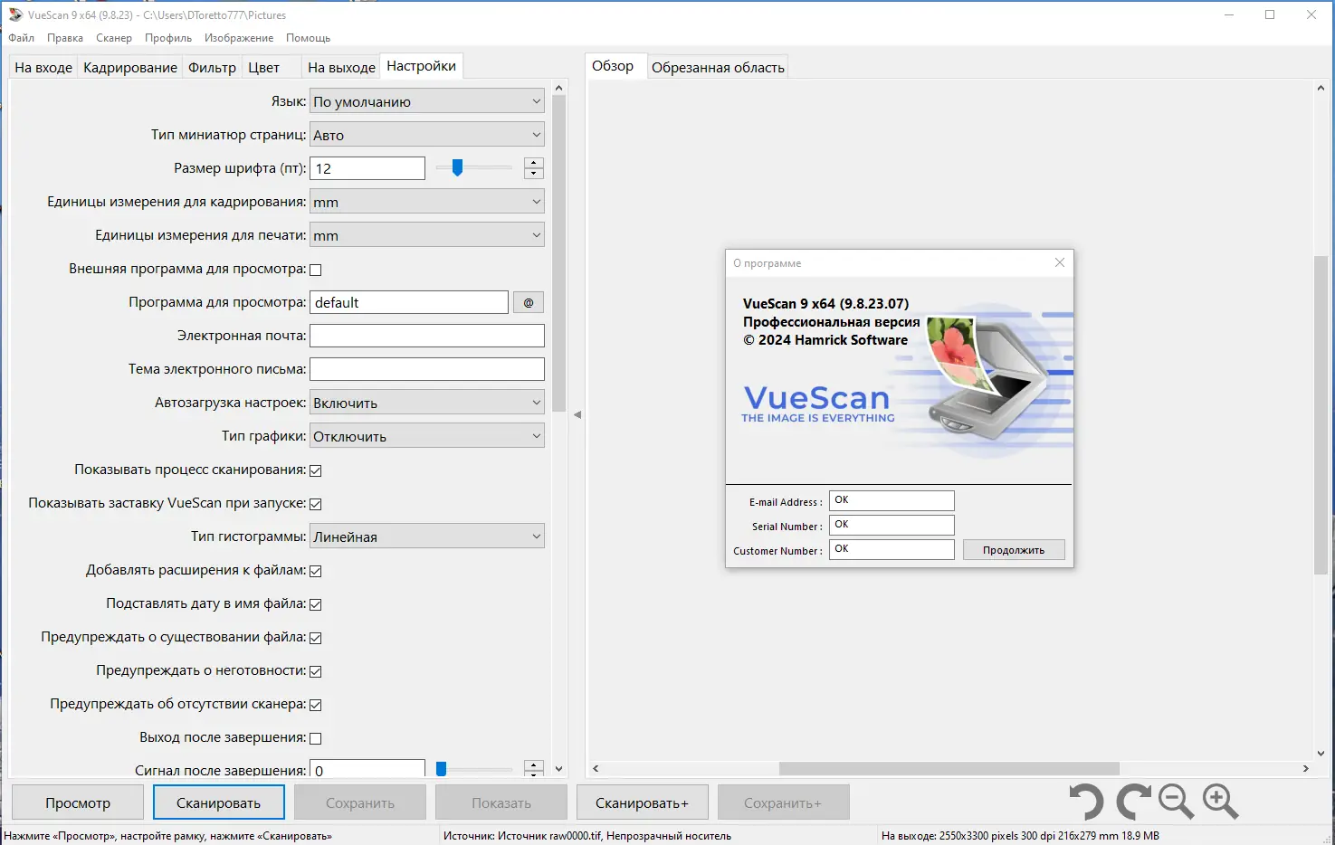 Работа с VueScan