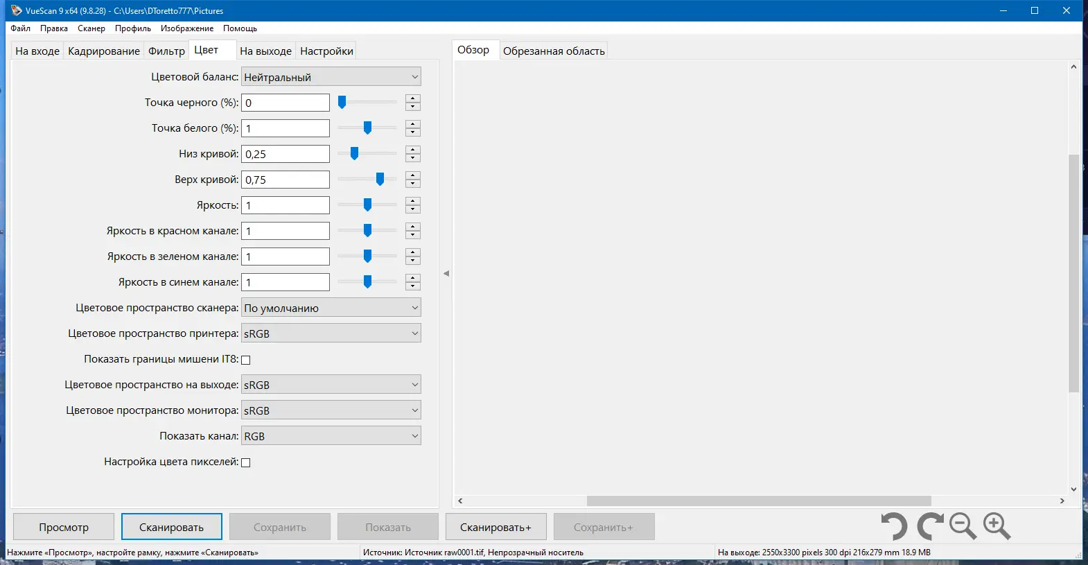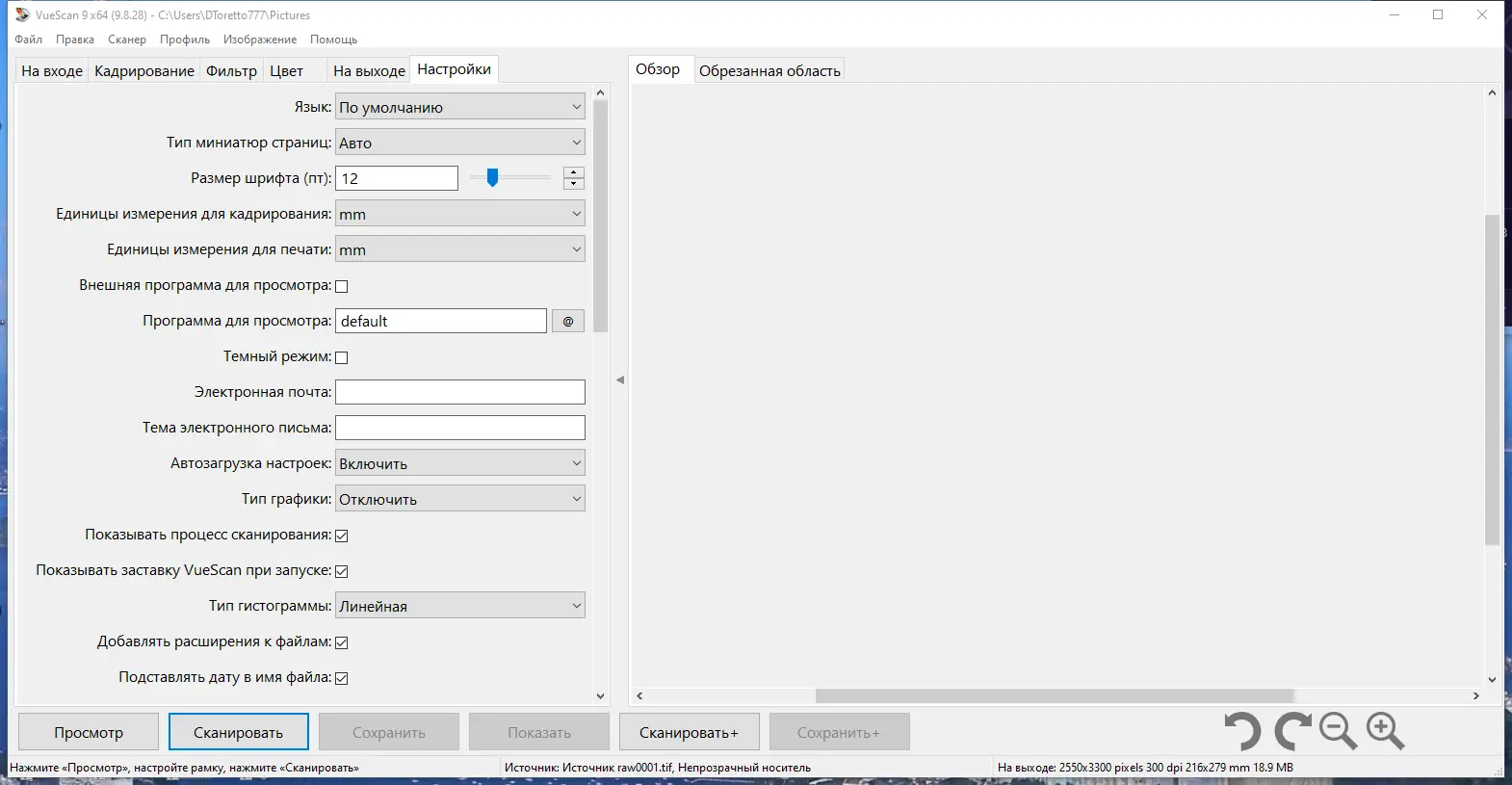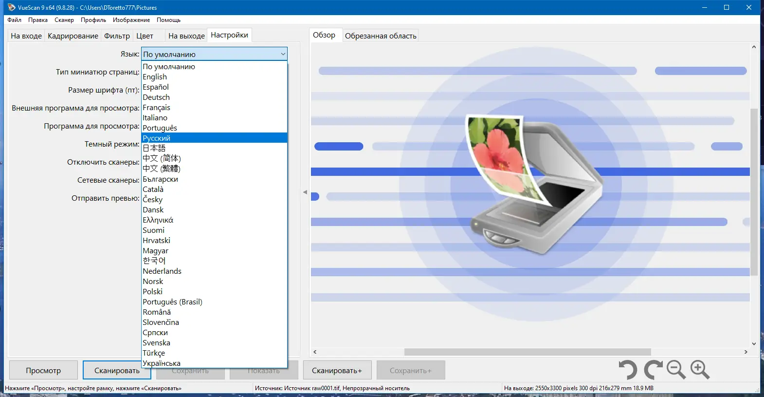 Работа с VueScan