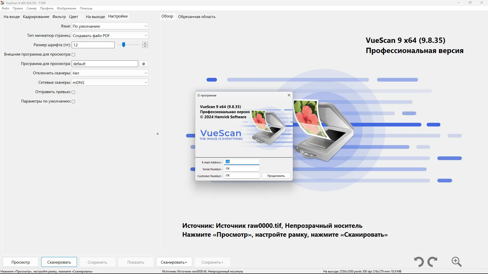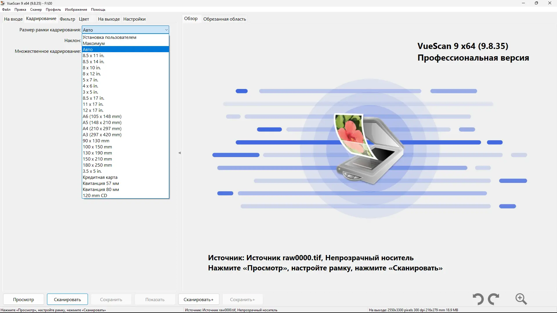 - Программа поддерживает сканирование в RAW-формате, сохраняя необработанные данные с датчика.