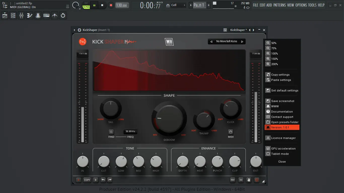 W.A. Production — KickShaper сочетает в себе высокую производительность, точность обработки и удобство интерфейса. Программа демонстрирует стабильную работу даже на системах со средними ресурсами, не создавая лишней нагрузки на процессор. Несмотря на широкие возможности, плагин остаётся простым в освоении, а наличие заводских пресетов ускоряет начало работы. Визуальная обратная связь и поддержка undo/redo делают процесс настройки прозрачным и безопасным.