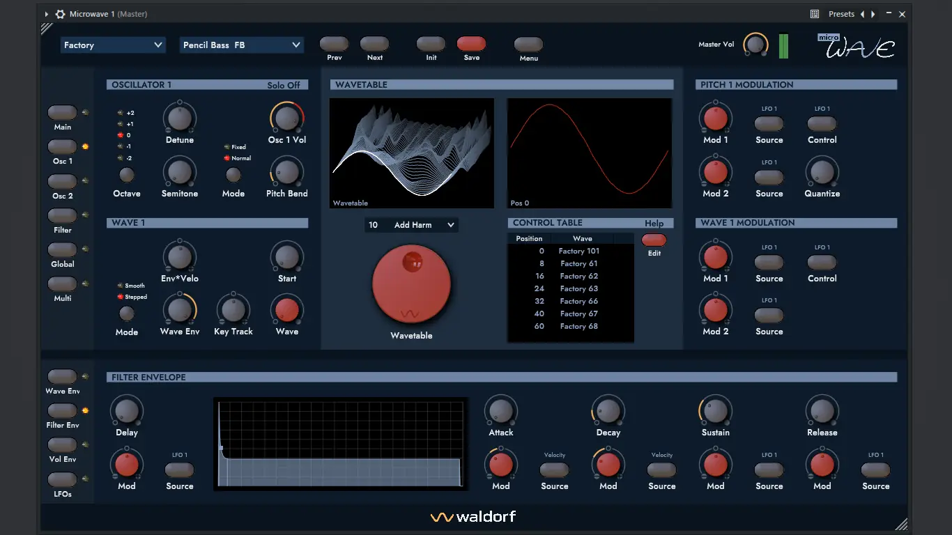 Waldorf — Microwave — программный синтезатор, воссоздающий легендарный звук оригинального аппаратного инструмента начала девяностых. Этот плагин сочетает волновой синтез с аналоговыми фильтрами, обеспечивая насыщенные басы, плавные пэды и динамичные модуляции, характерные для электронной музыки того времени.