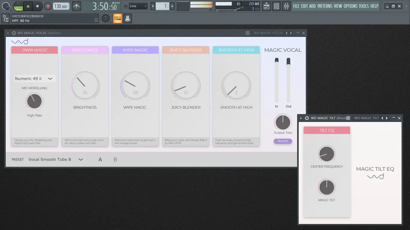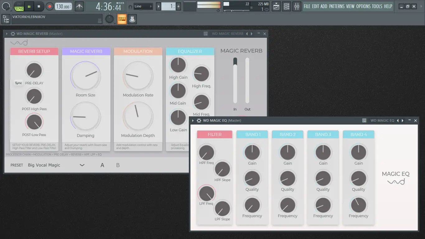 Использование плагинов не требует специальных знаний и интегрируется в стандартный рабочий процесс. После установки компоненты появляются в списке доступных VST-устройств вашей DAW. Для обработки дорожки достаточно выбрать нужный плагин и настроить параметры с помощью ползунков и переключателей. Интерфейс каждого модуля интуитивно понятен: основные элементы вынесены на передний план, дополнительные функции скрыты за опциями. Например, в MAGIC TILT можно регулировать наклон АЧХ, изменяя баланс между высокими и низкими частотами, что полезно при выравнивании общего микса. В ревербераторе доступна настройка времени затухания, модуляции и частотной маскировки, что позволяет адаптировать эффект под любой тип помещения.