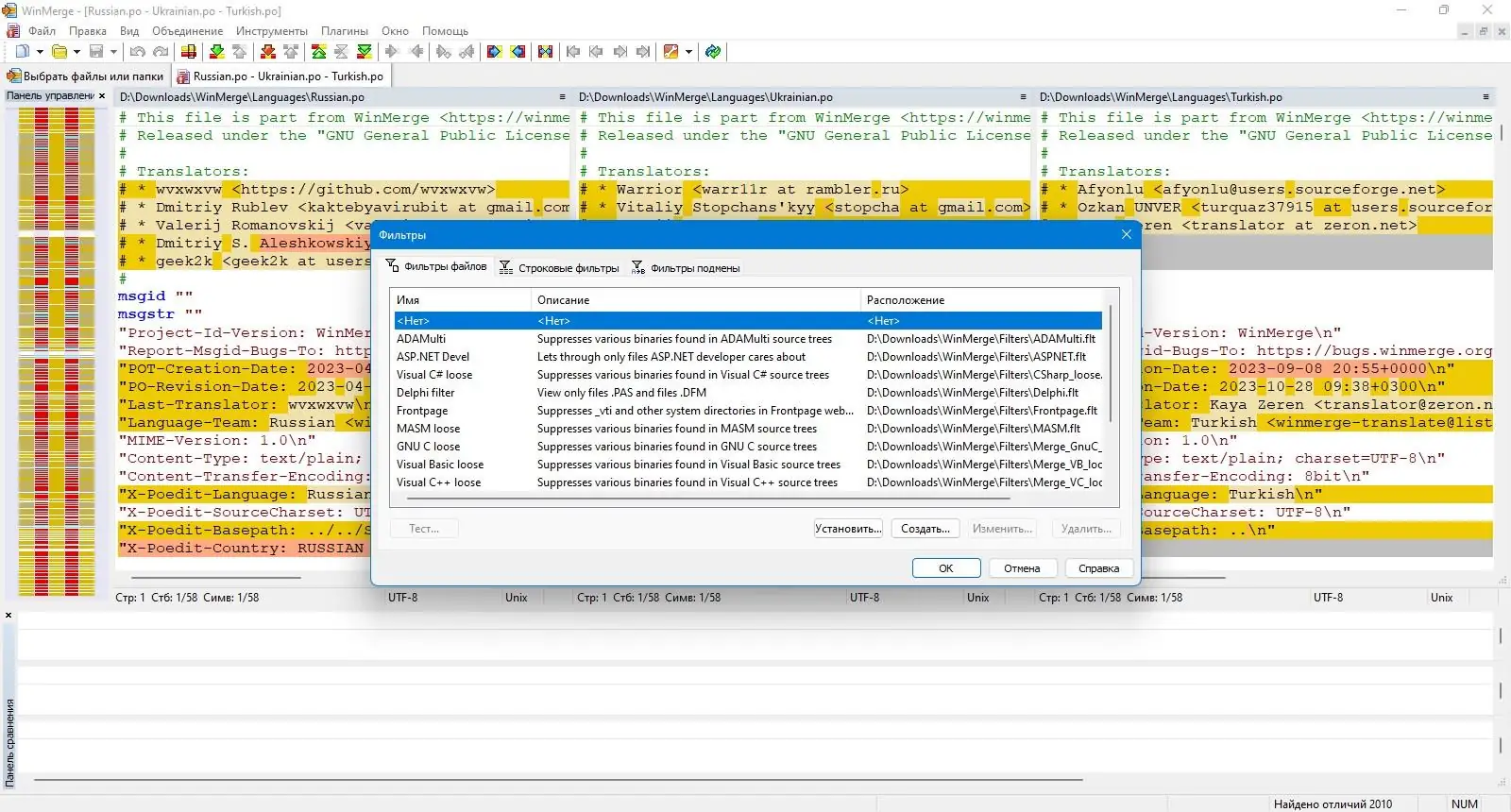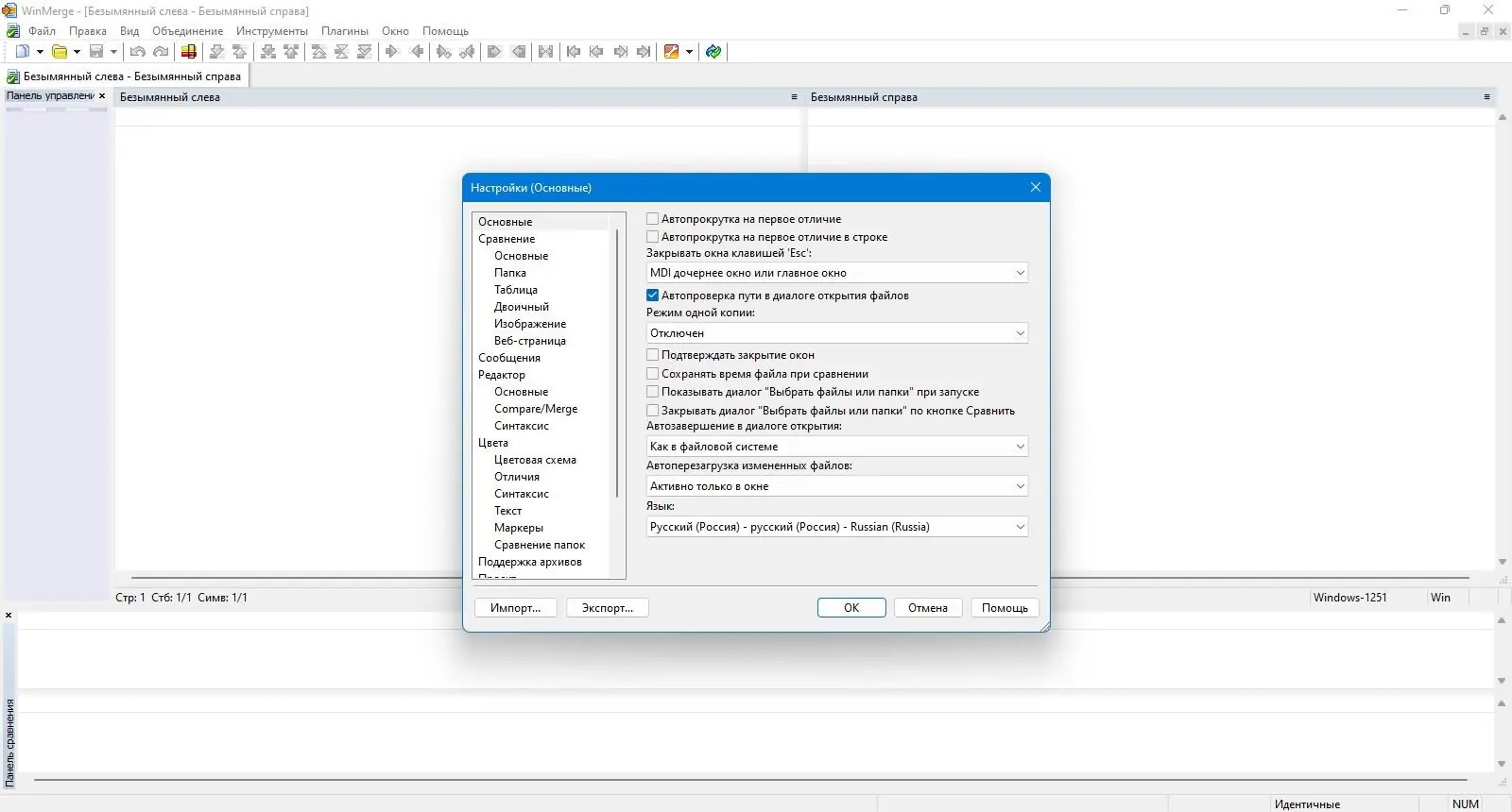 Работа с WinMerge