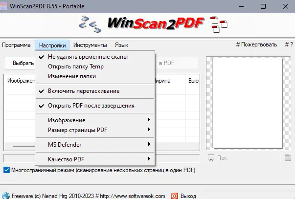 Работа с WinScan2PDF