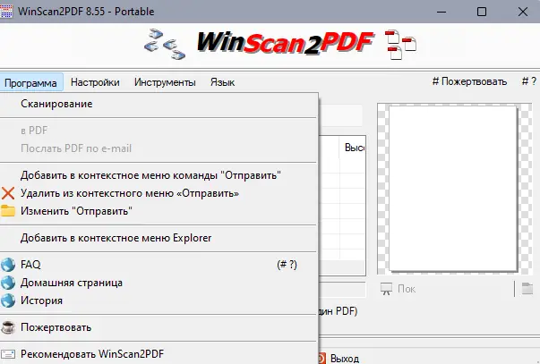 WinScan2PDF — это компактное настольное приложение для Windows, предназначенное для сканирования документов и их немедленного сохранения в формате PDF. Программа упрощает процесс преобразования бумажных документов в электронные файлы без необходимости использования драйверов виртуальных принтеров или сложных редакторов. Утилита подходит для частного, офисного и коммерческого использования, обеспечивая быстрое и удобное сканирование.
