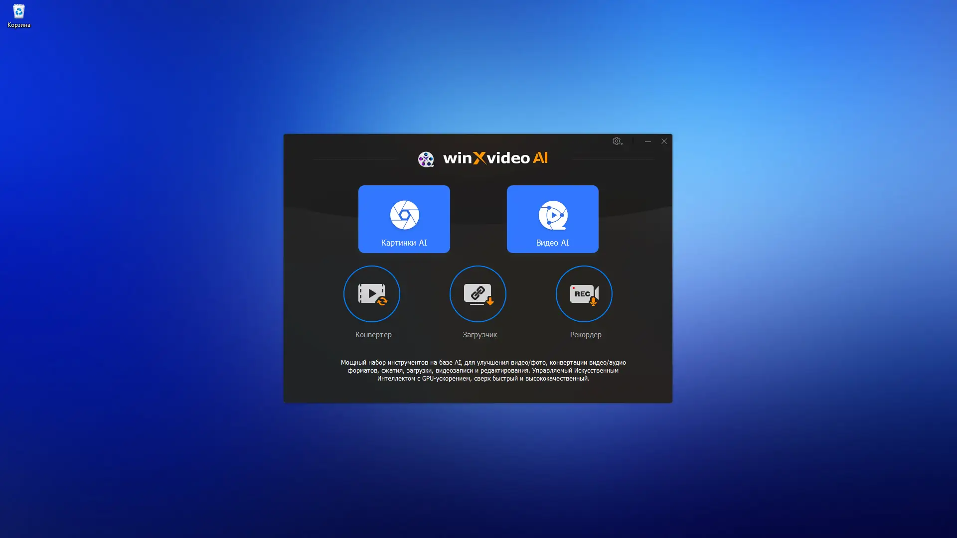 Интерфейс Winxvideo AI интуитивно понятен и не требует глубоких технических знаний. После запуска приложения можно загрузить видеофайл, выбрать нужный режим обработки — улучшение, конвертация, редактирование или масштабирование. Пользователь может настроить параметры вывода, включая разрешение, битрейт, формат и целевой носитель.