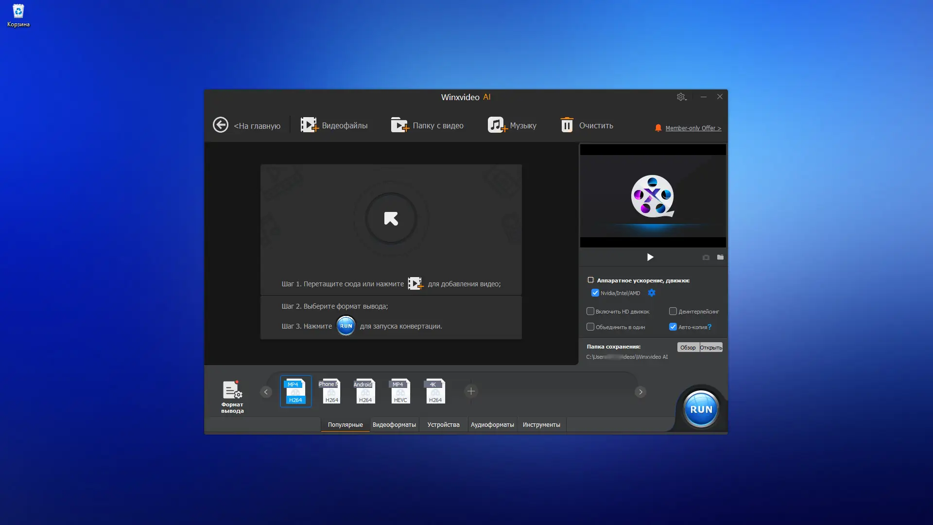 - Поддержка аппаратного ускорения и быстрая конвертация