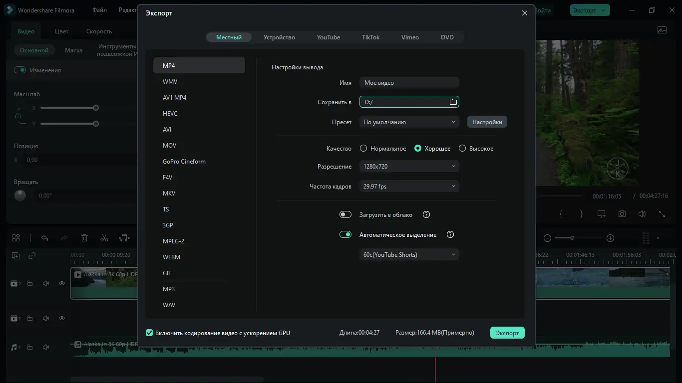Wondershare Filmora предлагает всё необходимое для полноценного редактирования видео в одном удобном приложении. Программа поддерживает широкий спектр входных и выходных форматов, включая 4K, AV1, HEVC и другие современные стандарты. Благодаря встроенным шаблонам, эффектам и предустановленным настройкам, пользователи могут легко создавать динамичные ролики, не обладая профессиональными навыками монтажа. Редактор подходит как для домашнего использования, так и для подготовки контента для YouTube, TikTok и других платформ.