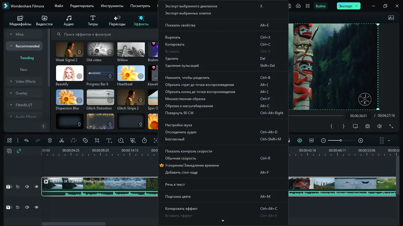 Работа с Wondershare Filmora начинается с импорта медиафайлов — видео, аудио и изображений — в библиотеку проекта. Далее клипы перетаскиваются на временную шкалу, где можно обрезать, объединять и накладывать эффекты. Благодаря интуитивному интерфейсу, даже новичок быстро освоит базовые операции: изменение скорости, добавление переходов, наложение титров и синхронизацию звука. Продвинутые пользователи могут использовать ключевые кадры, маски, корректирующие слои и AI-инструменты для более точного контроля над результатом. После завершения монтажа видео можно экспортировать в нужный формат, устройство или напрямую загрузить в соцсети.