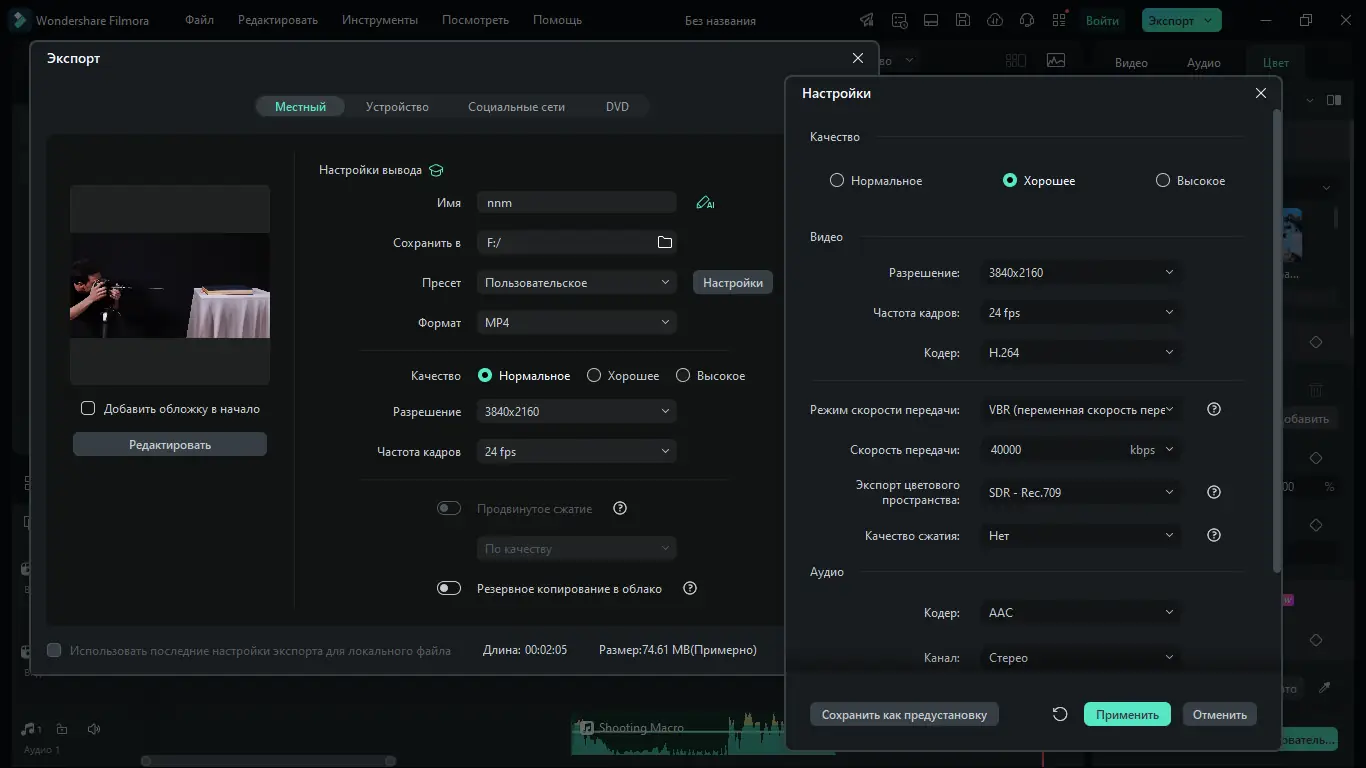 - Поддержка экспорта в форматах 4K и прямая публикация в социальные сети.