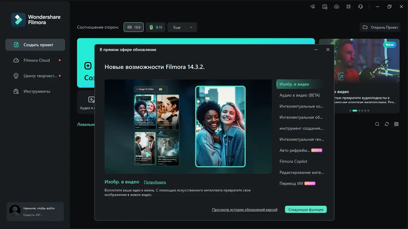 Wondershare Filmora сочетает в себе функциональность профессионального редактора и простоту приложения для начинающих. Программа регулярно обновляется, получая новые функции, включая улучшенные AI-инструменты и поддержку современных стандартов. При этом она остаётся стабильной и требовательной к ресурсам в разумных пределах.