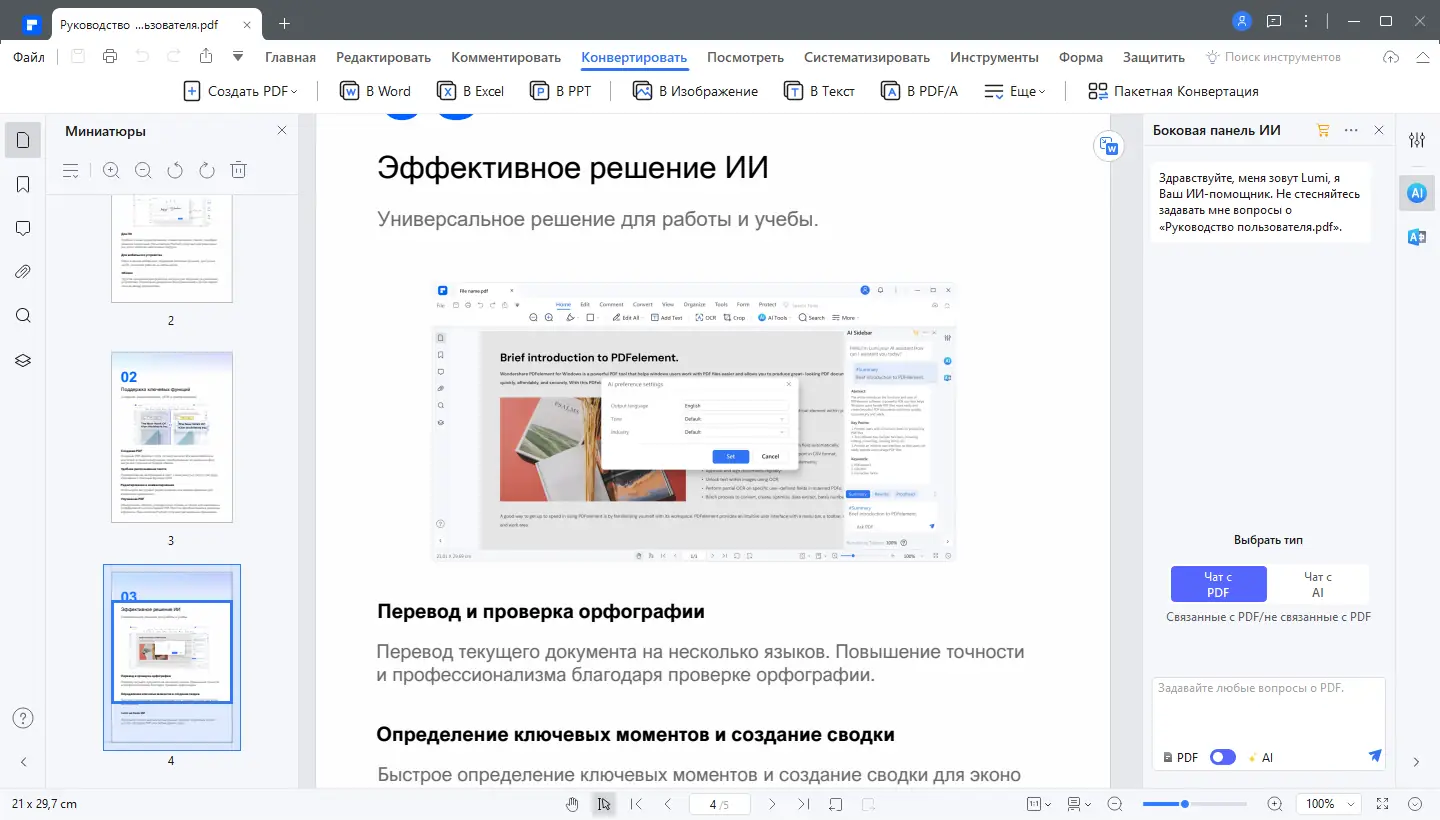 - Конвертация PDF в Word, Excel, изображения и другие форматы