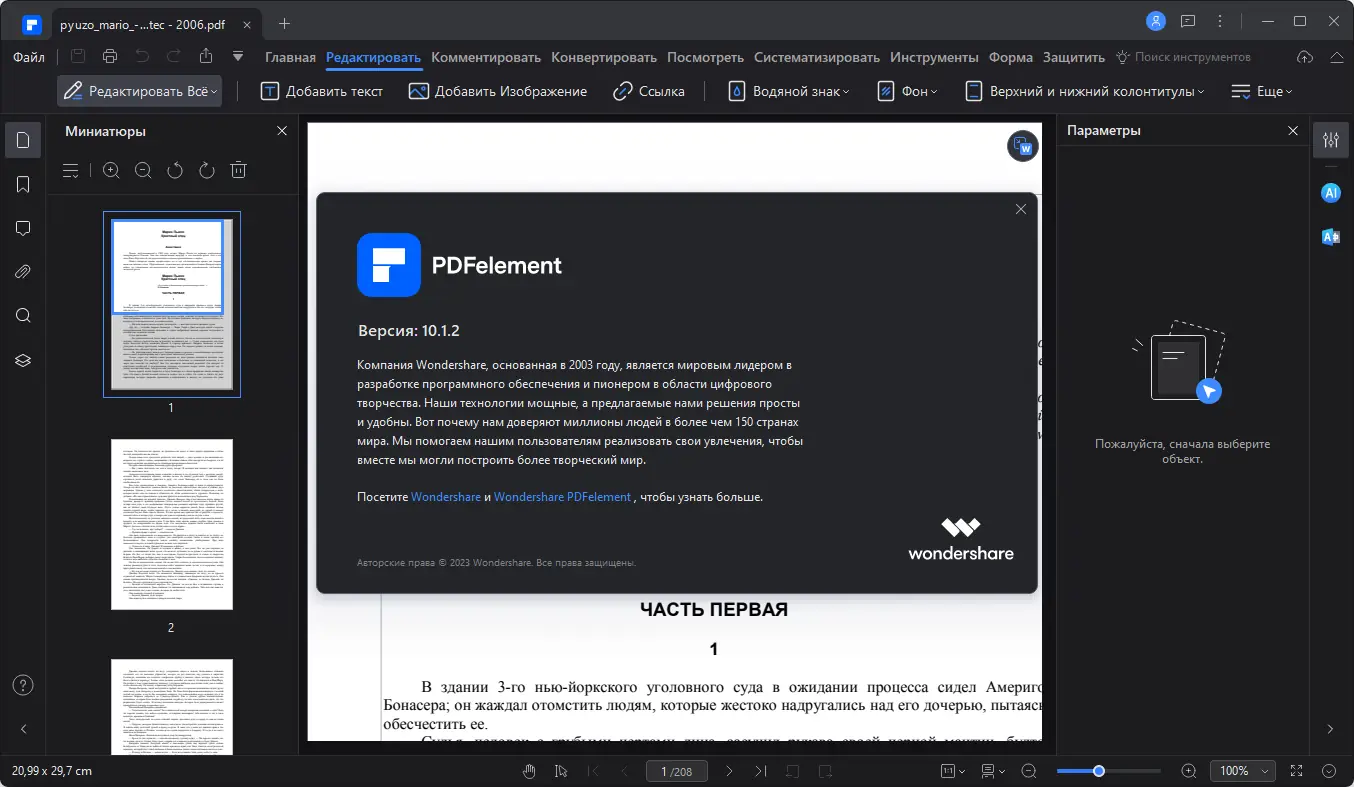 Работа с Wondershare PDFelement