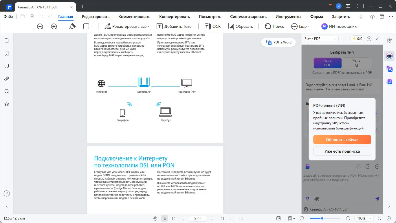 Wondershare PDFelement предлагает широкий набор инструментов, который покрывает почти все потребности в обработке PDF. Высокая скорость обработки, поддержка OCR и удобный интерфейс делают программу конкурентоспособной на фоне аналогов. Однако у неё есть и ограничения, особенно в бесплатной версии, где часть функций недоступна. Программа активно развивается, и её pro-версия предоставляет доступ ко всем возможностям, включая автоматизацию задач и расширенную поддержку форматов. Тем не менее, отсутствие полноценной синхронизации с мобильными устройствами может быть минусом для некоторых пользователей.