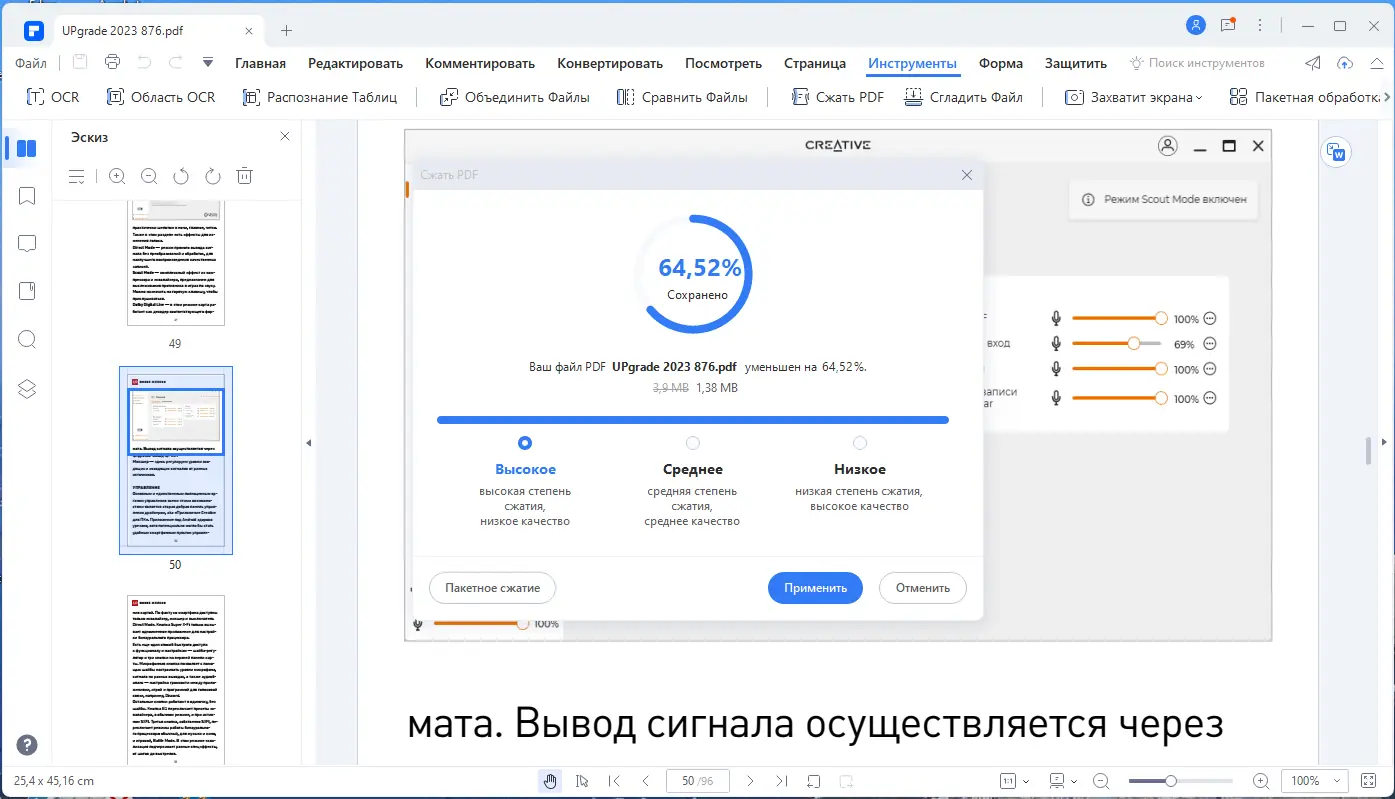 Программа демонстрирует высокую производительность при обработке документов различного объёма и структуры. Особенно ценится поддержка OCR, которая точно распознаёт текст даже на низкокачественных сканах. Функция объединения файлов упрощает создание сводных отчётов, а режим редакции позволяет надёжно скрывать конфиденциальные данные. Пользователи отмечают стабильность работы и минимальное потребление системных ресурсов.