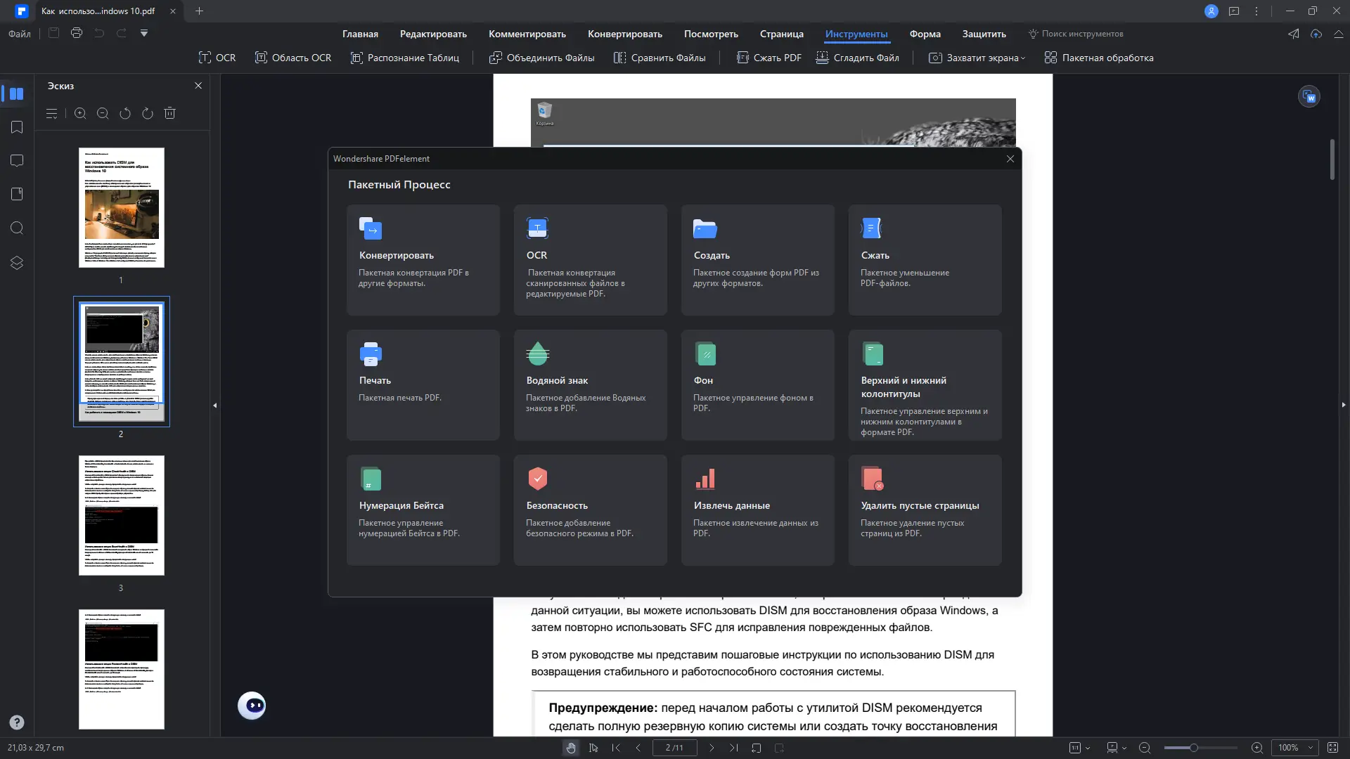 PDFelement обеспечивает высокую точность распознавания текста и стабильную работу даже с большими файлами.