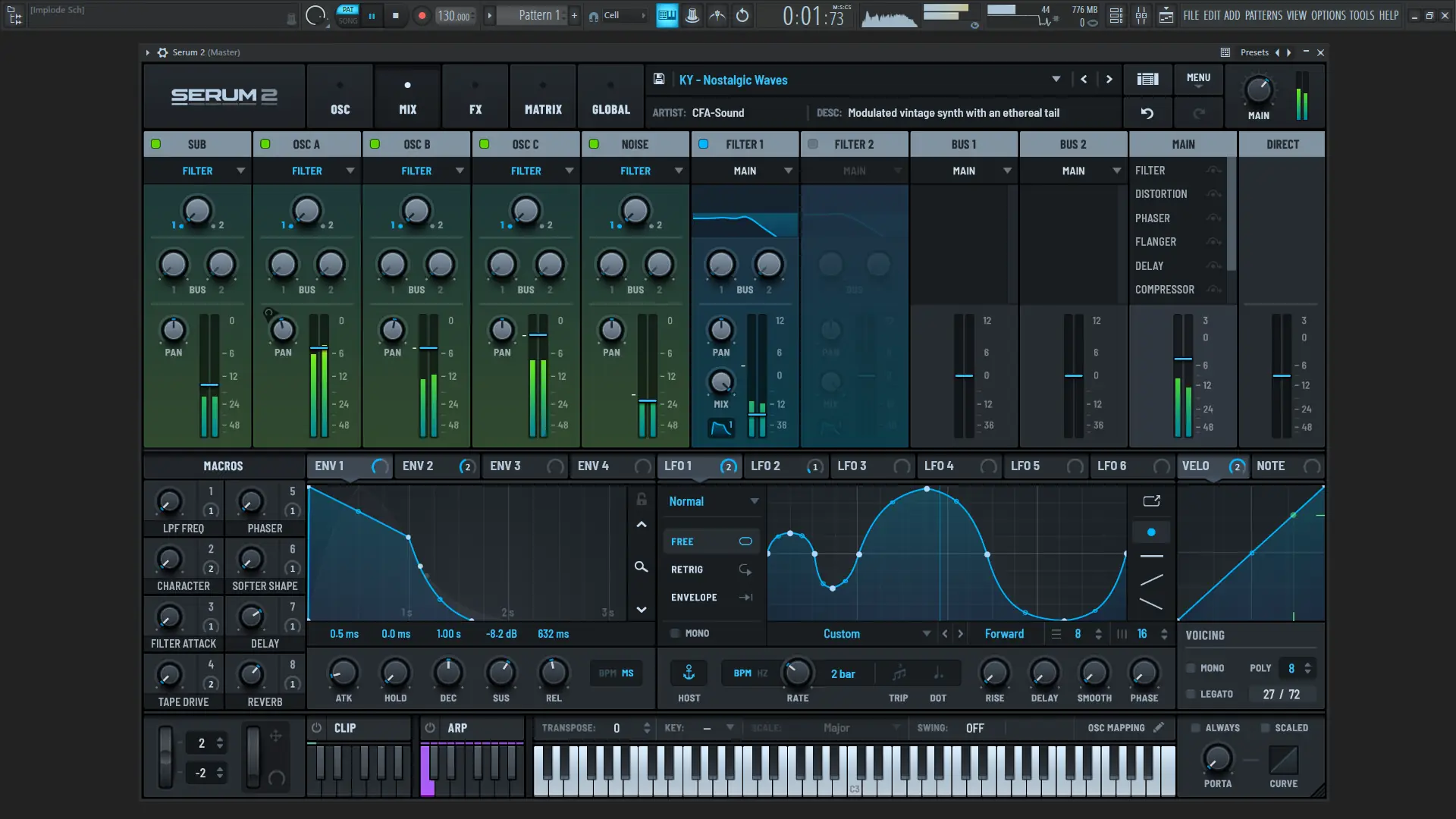 - Расширенная система модуляции с 10 LFO и 4 огибающими