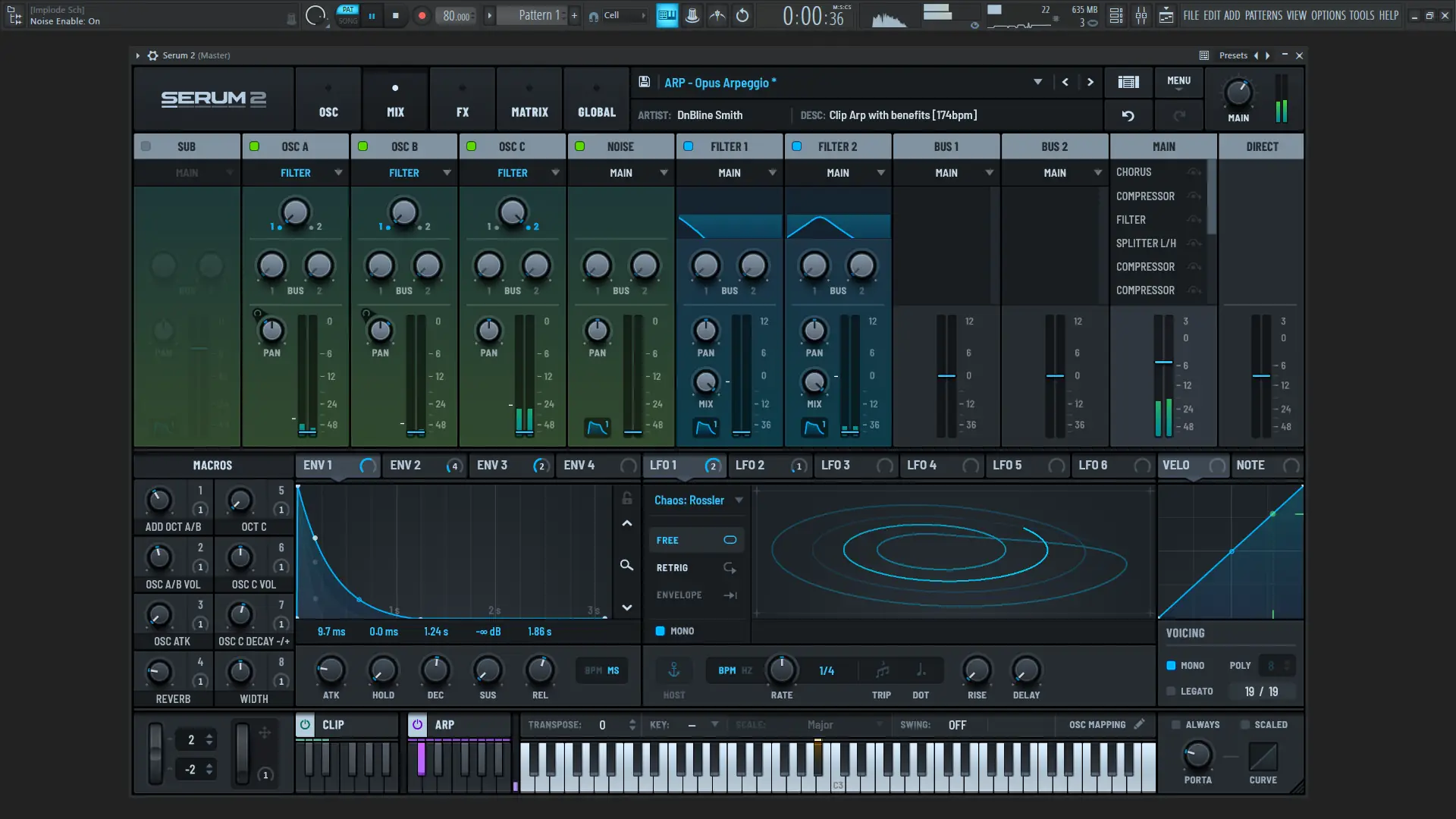 Пользовательский интерфейс Serum 2 сохраняет наглядность и функциональность, при этом получив новые элементы управления. Каждый осциллятор можно настроить отдельно, выбирая тип сигнала — от волновой таблицы до гранулированного или спектрального режима. В режиме сэмпла можно загружать собственные аудиофайлы и применять к ним модуляцию, огибающие и фильтрацию. Работа с фильтрами стала визуально понятнее: параметры настраиваются напрямую на графике, что ускоряет процесс формирования тембра. Арпеджиатор поддерживает сложные ритмические структуры, а клип-секвенсор позволяет создавать целые паттерны с автоматизацией параметров. Все изменения отслеживаются через полную систему отмены и повторения действий, что критично при экспериментальной работе.