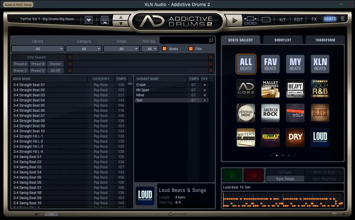 XLN Audio Addictive Drums представляет собой виртуальный драм-машин, основанный на семплах реальных ударных, записанных в профессиональных студиях с использованием высококачественного микрофонирования. Каждый элемент барабанной установки — от малого барабана до тарелок — записан с множеством динамических слоёв, что позволяет передавать все оттенки игры, включая приглушённые удары, отбои и скользящие переходы. Такой подход обеспечивает максимальную выразительность и живость звучания, делая ритм-секцию органичной частью музыкальной композиции. Плагин совместим с большинством популярных цифровых аудио рабочих станций и работает в форматах VST, AU и AAX.