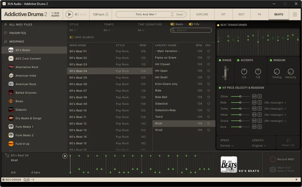 - Программа поддерживает MIDI-импорт и позволяет редактировать громкость, длительность и динамику ударов.