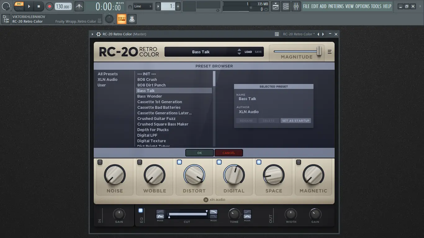 Использование RC-20 Retro Color начинается с загрузки плагина в аудиодорожку цифровой рабочей станции. После запуска интерфейс отображает все шесть модулей, каждый из которых можно включать, настраивать и комбинировать по желанию. Пользователь может регулировать интенсивность шумов, глубину модуляции, скорость дроп-аутов и частоту фильтрации, добиваясь нужного эффекта. Особое внимание уделено визуальной обратной связи — анимированные элементы отображают активность каждого процесса в реальном времени, что упрощает точную настройку. Эффекты можно применять как к отдельным инструментам, так и к групповым шинам для общего цвета микса.