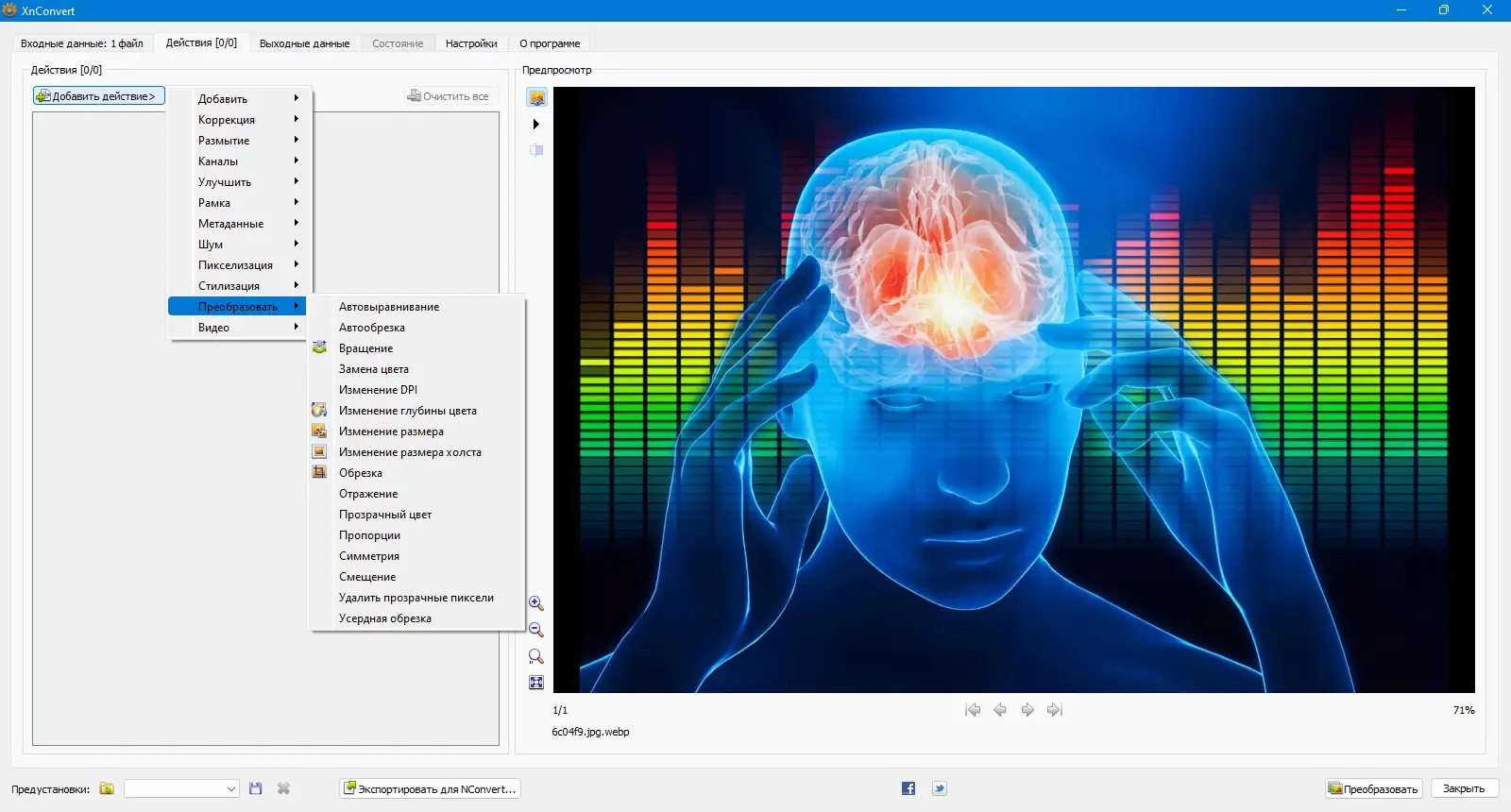 XnConvert — это мощная бесплатная утилита для массовой обработки и конвертации изображений, поддерживающая более 500 графических форматов, включая популярные JPEG, PNG, TIFF, RAW и WebP. Программа предлагает широкий набор инструментов для изменения размера, обрезки, цветокоррекции, наложения фильтров и водяных знаков, а также работает на разных операционных системах без необходимости установки. Благодаря интуитивному интерфейсу и поддержке пакетной обработки, она подходит как для новичков, так и для профессионалов.