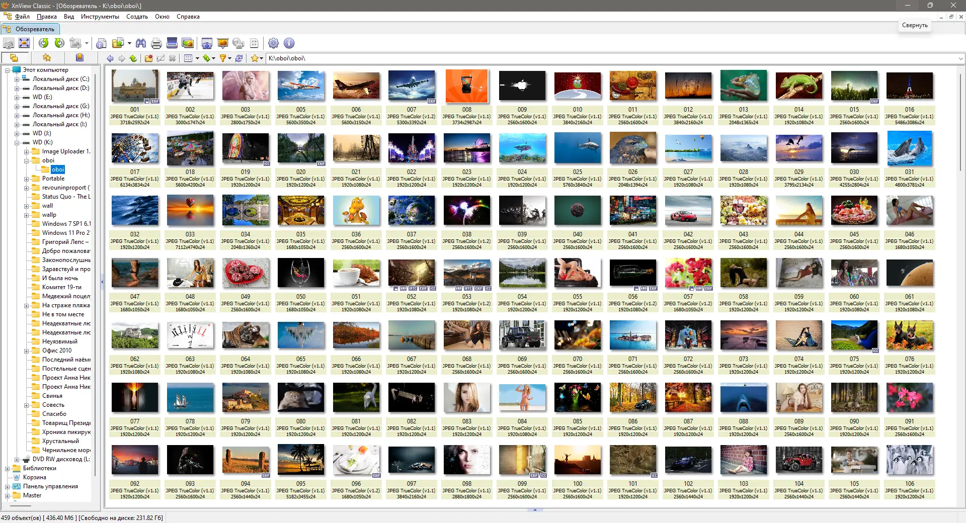 XnView — универсальный графический просмотрщик и редактор, разработанный для эффективной работы с цифровыми изображениями. Он сочетает в себе функции конвертера, браузера, редактора и инструмента для автоматизации задач, что делает его незаменимым при работе с большими коллекциями файлов. Программа поддерживает широкий спектр графических форматов, включая редкие и устаревшие типы, обеспечивая совместимость с большинством источников изображений.