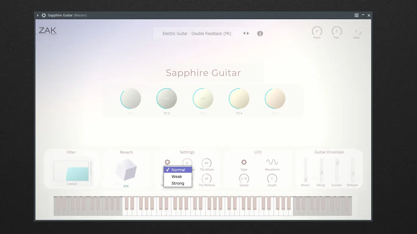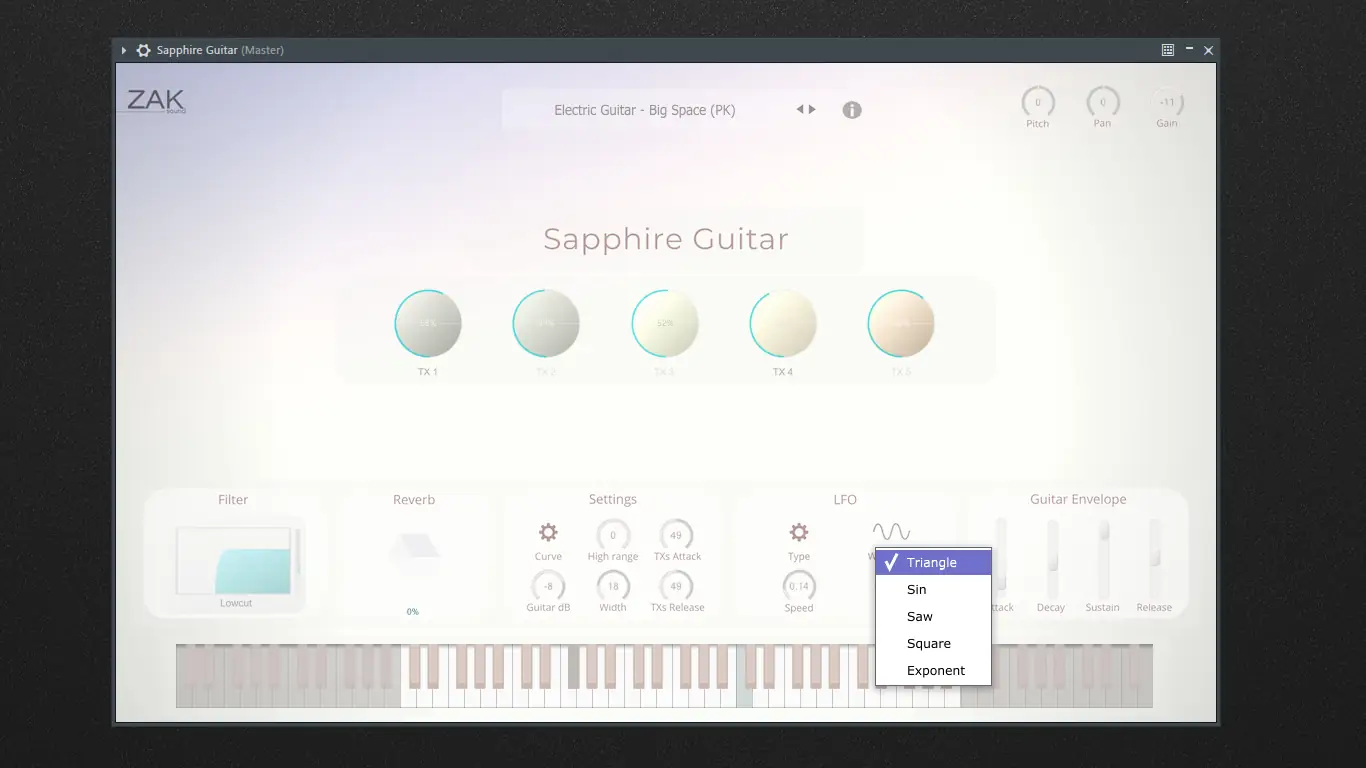 Плагин ZAK Sound — Sapphire Guitar подходит для работы в жанрах эмбиент, нео-классика, саунд-арт и киномузыка, где важна атмосфера и эмоциональная глубина. Благодаря своей уникальной архитектуре он выделяется на фоне стандартных гитарных сэмплеров.