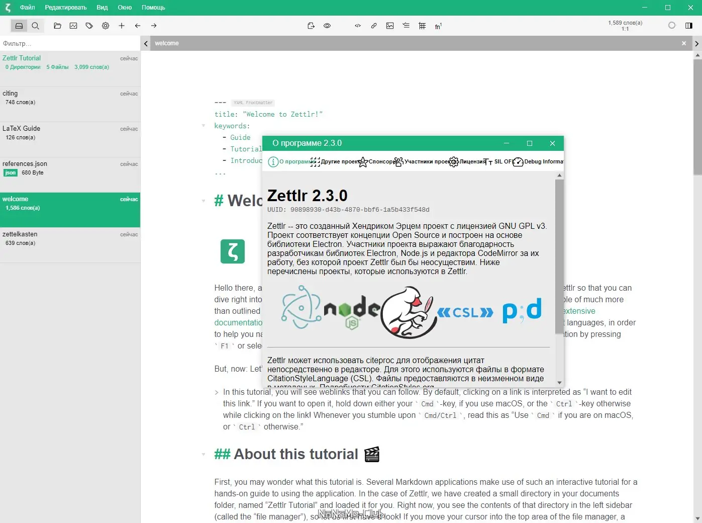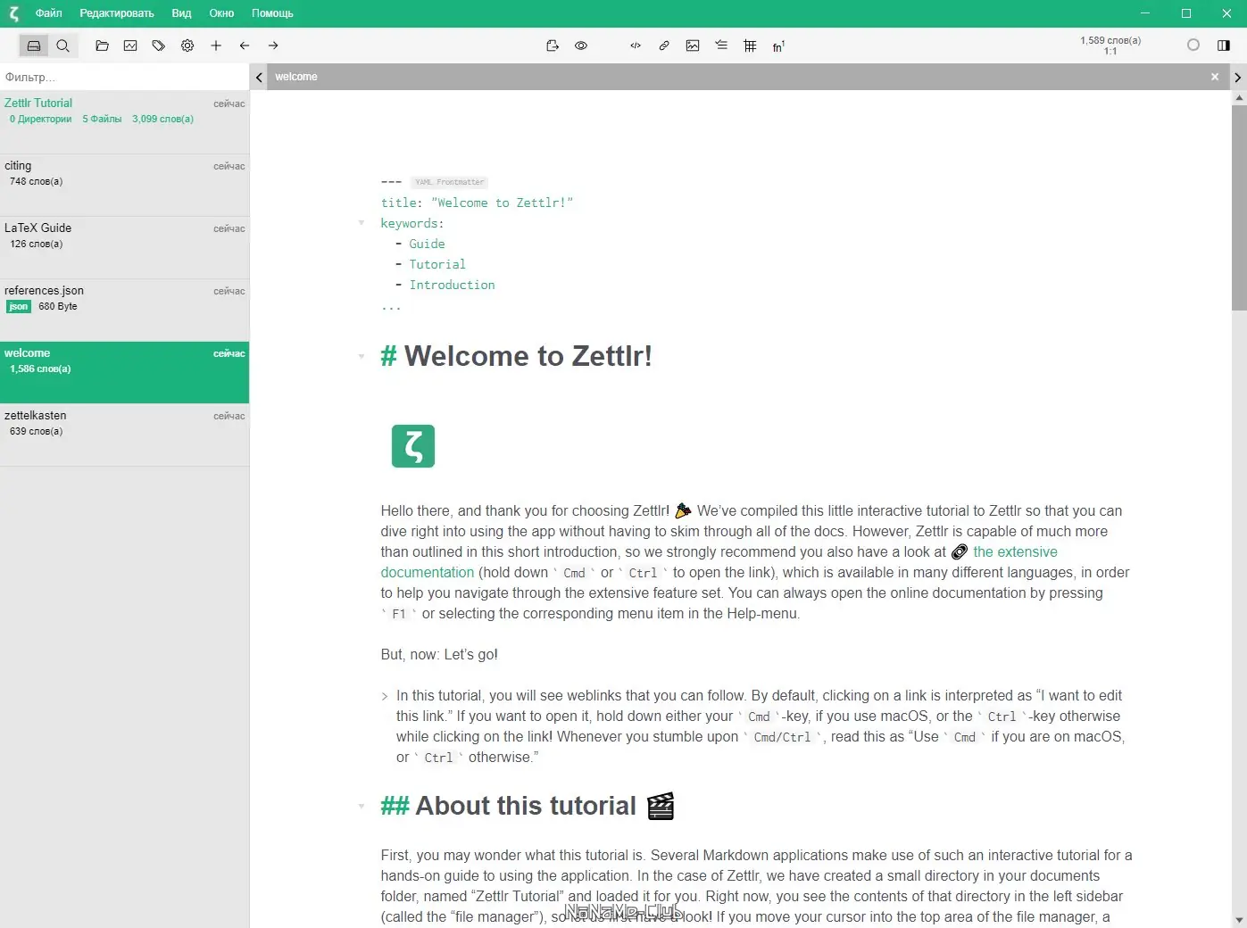 Zettlr — это современный текстовый редактор с открытым исходным кодом, ориентированный на создание структурированных заметок с использованием разметки Markdown. Программа подходит как для научных работ, так и для повседневного ведения документации, обеспечивая удобный доступ к инструментам форматирования, экспорта и организации контента. Благодаря поддержке популярных форматов и встроенным возможностям синхронизации, редактор становится надёжным помощником в управлении текстовой информацией.