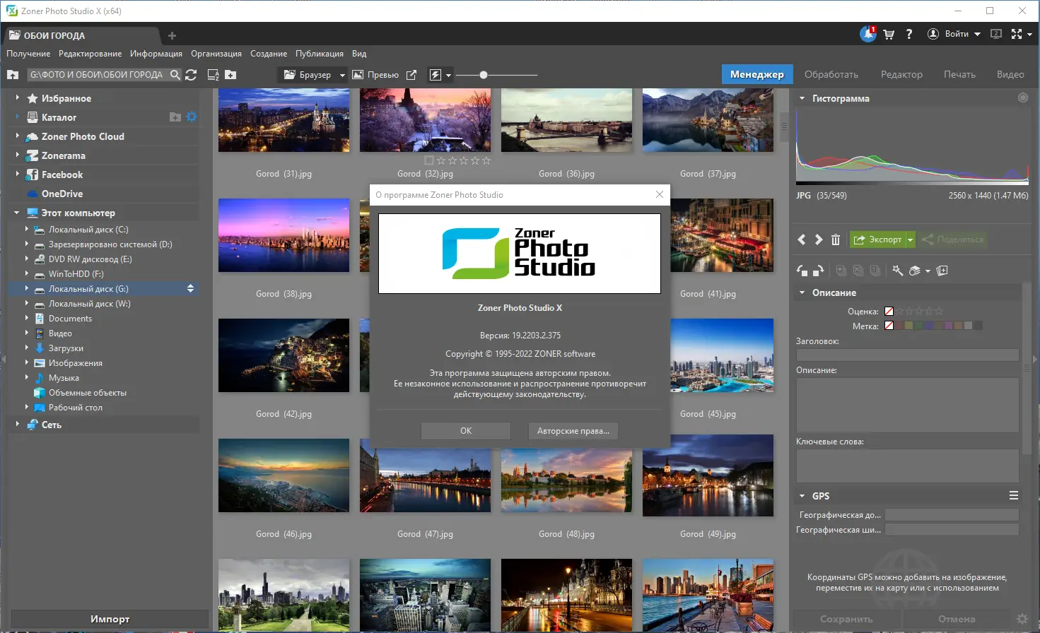 Zoner Photo Studio — это многофункциональный инструмент для обработки и управления цифровыми фотографиями, сочетающий в себе возможности каталогизатора, редактора изображений и средства публикации. Программа поддерживает широкий спектр форматов, включая RAW, и позволяет эффективно работать с фото на всех этапах — от импорта до финальной публикации. Особое внимание уделено работе с метаданными, включая извлечение географических координат из EXIF, что позволяет визуализировать расположение съёмки на карте.