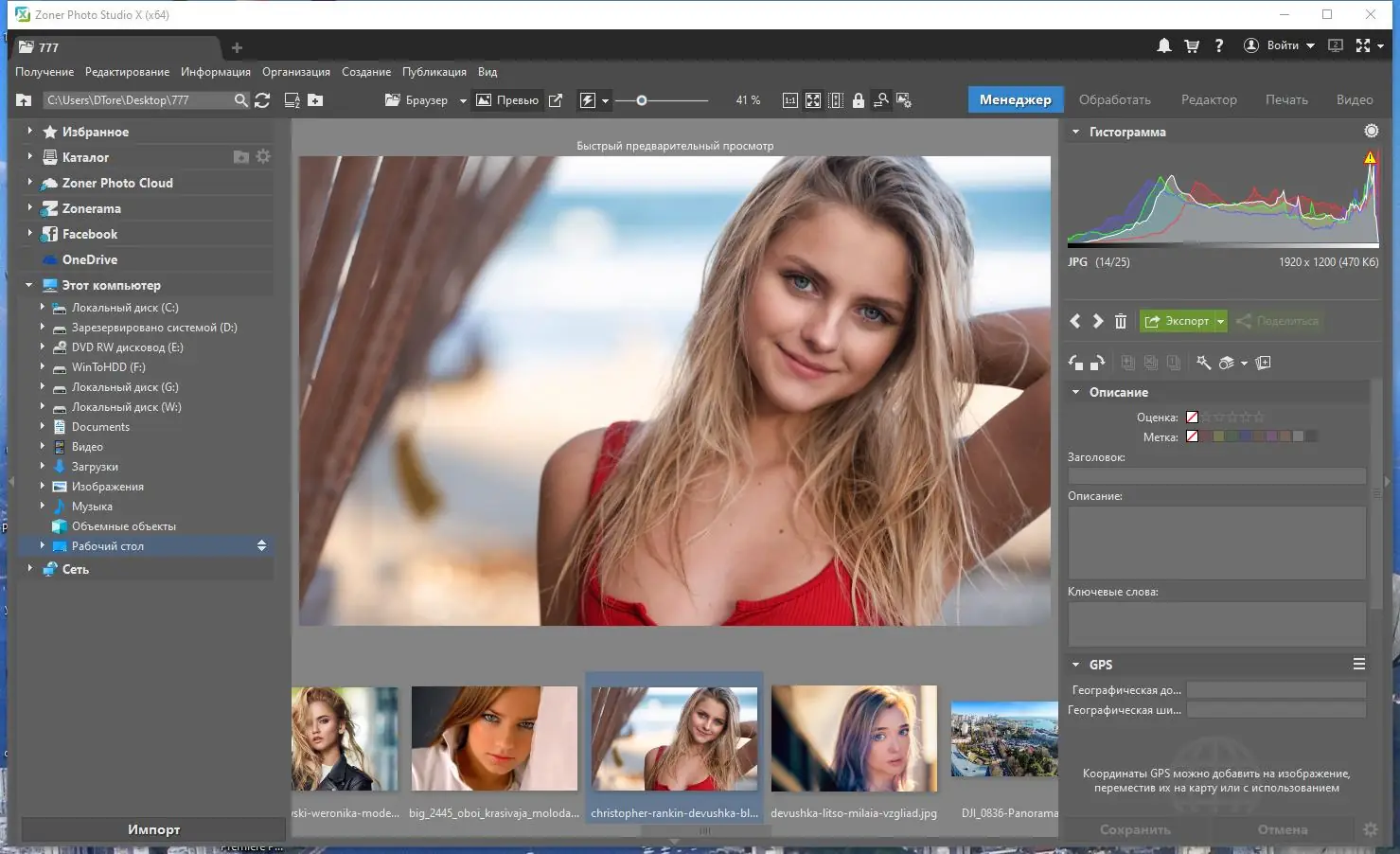Работа с Zoner Photo Studio